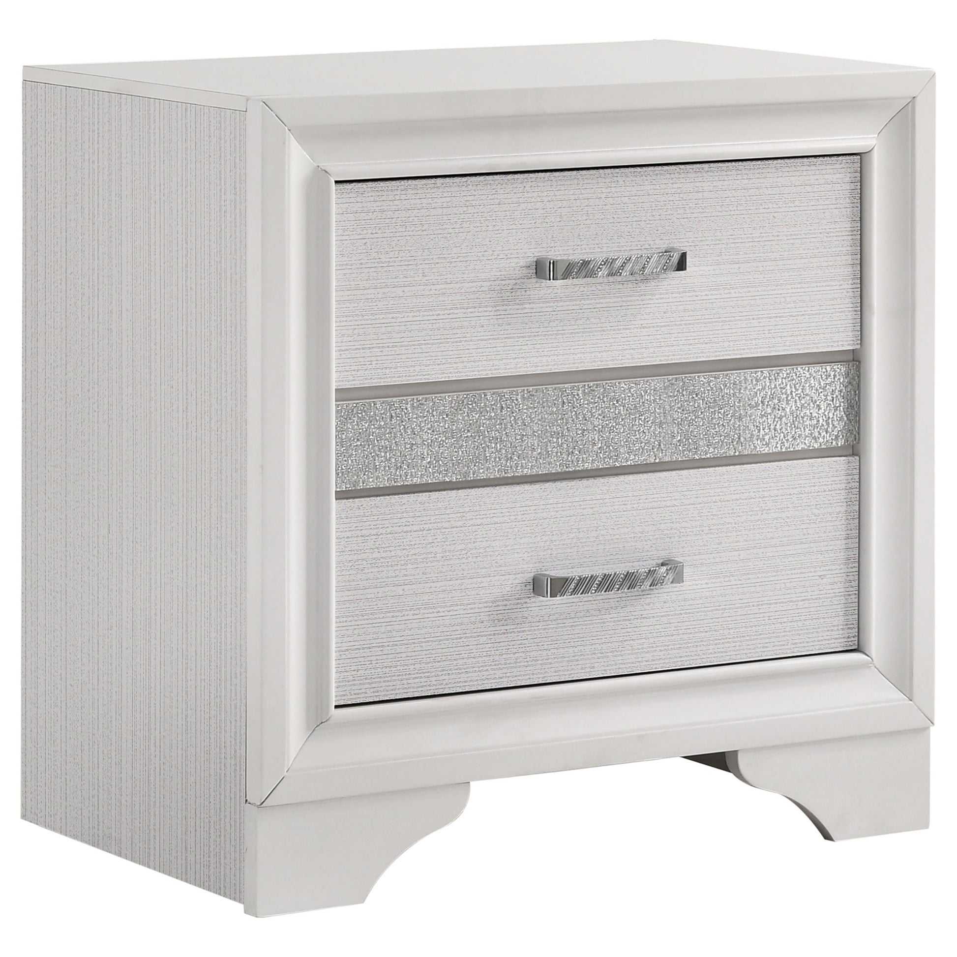 - Glitter Striped Headboard: Features a shimmering striped pattern on the padded headboard for a modern glamorous focal point