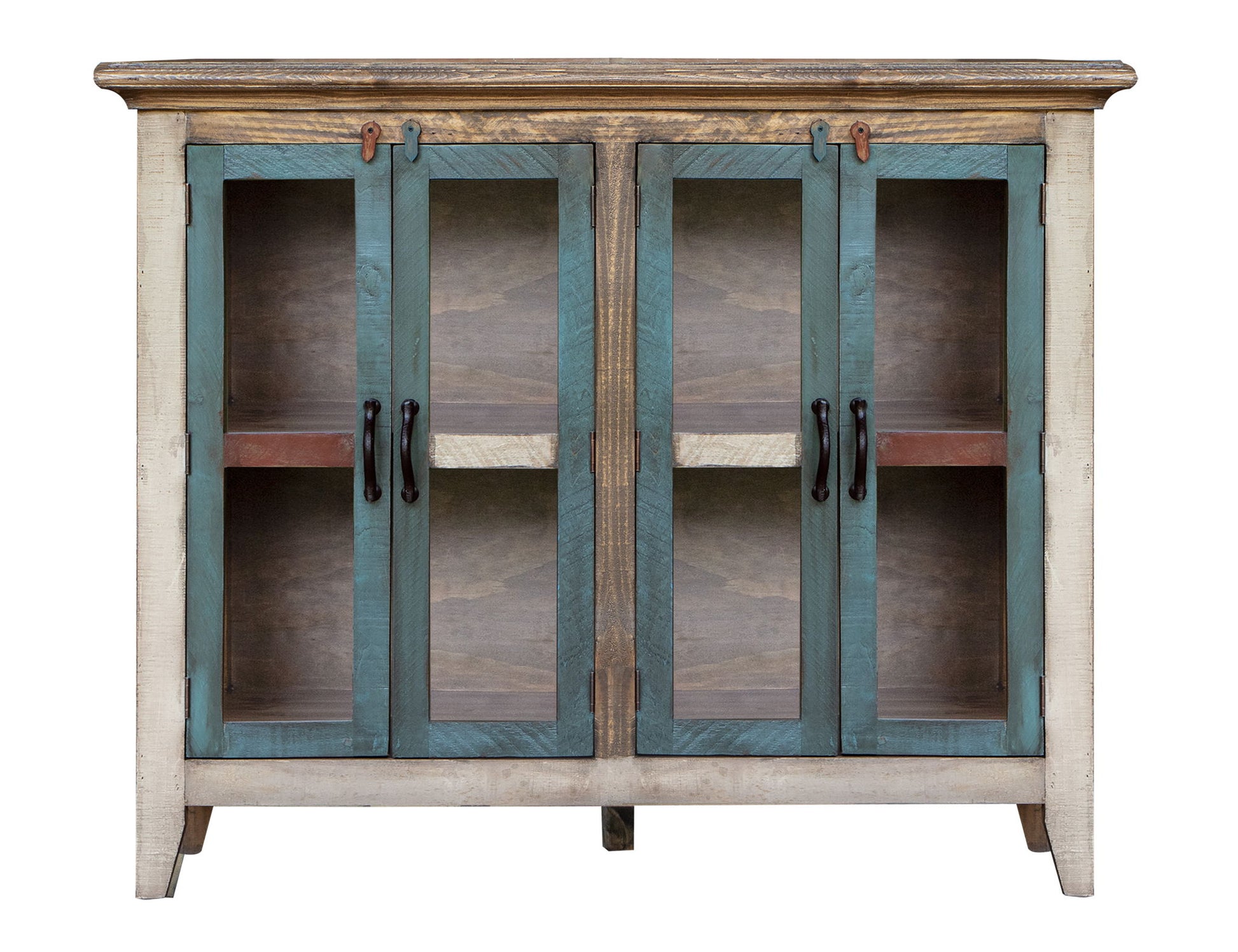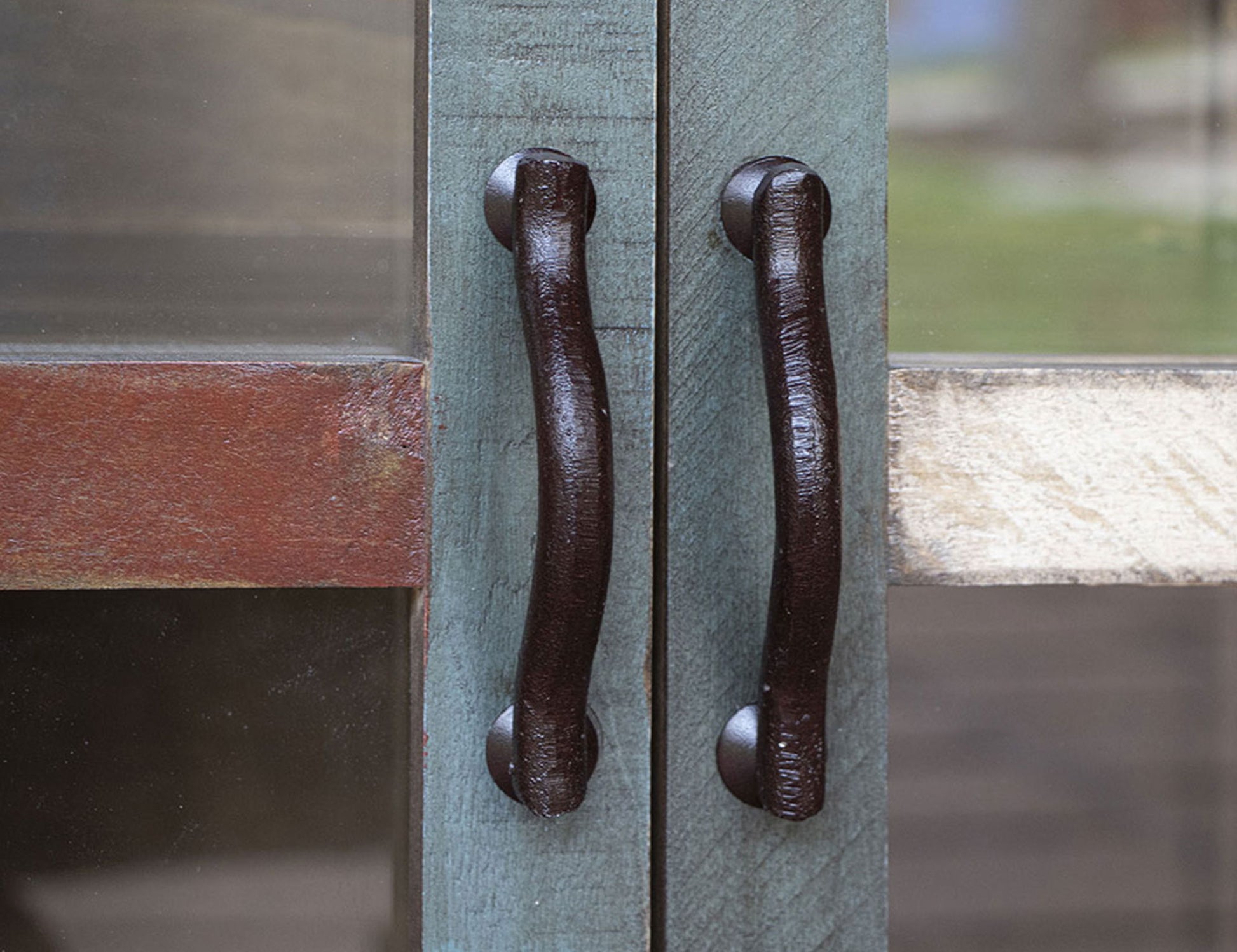 - A multi-step, soft, multi-colored finish on hand-distressed wood.