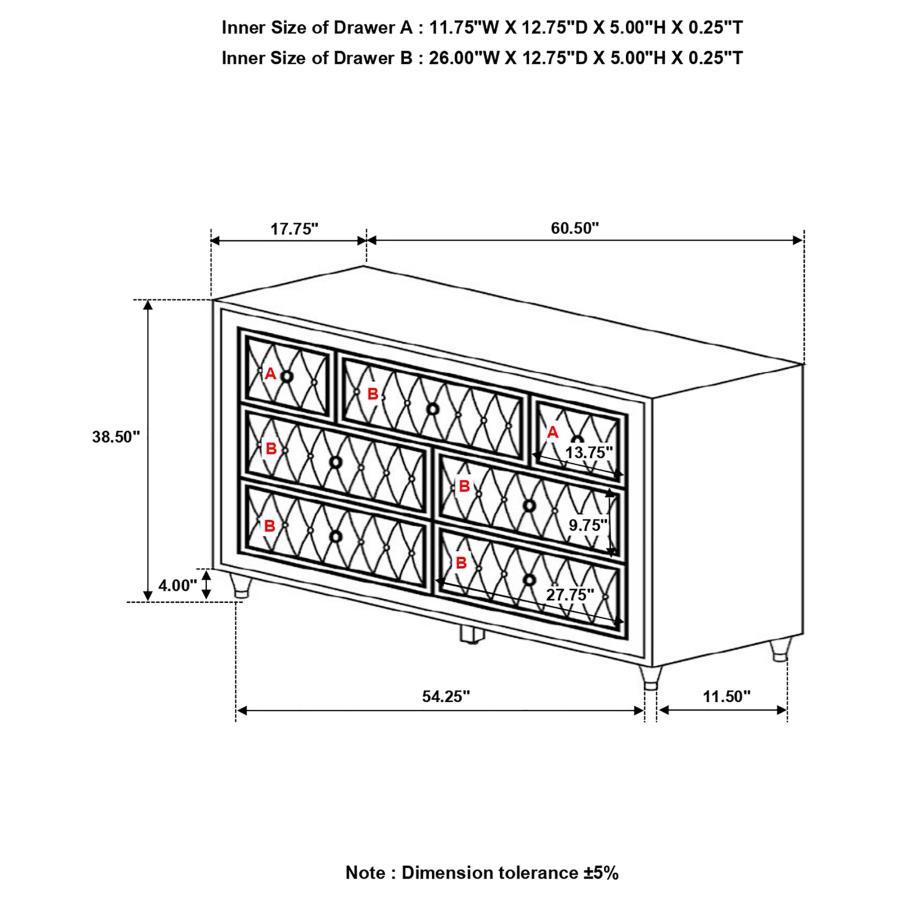 Antonella - 7-Drawer Upholstered Dresser