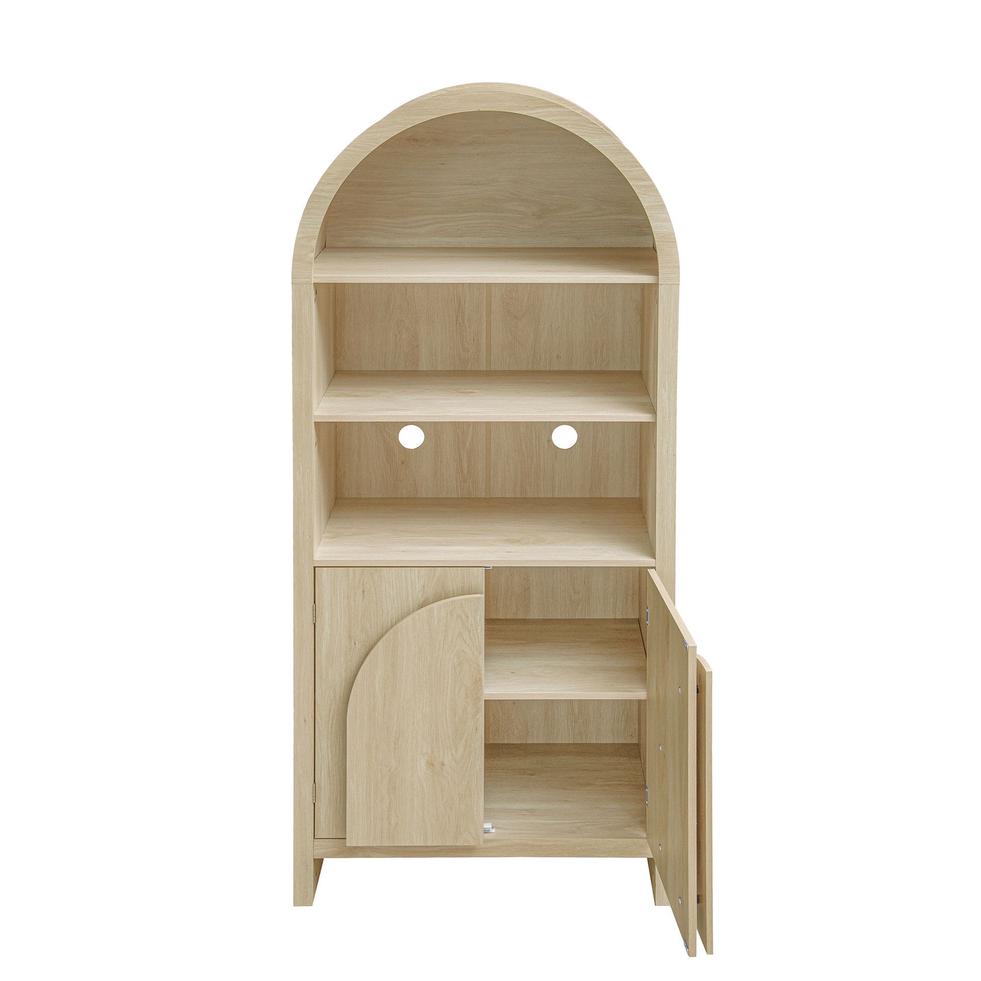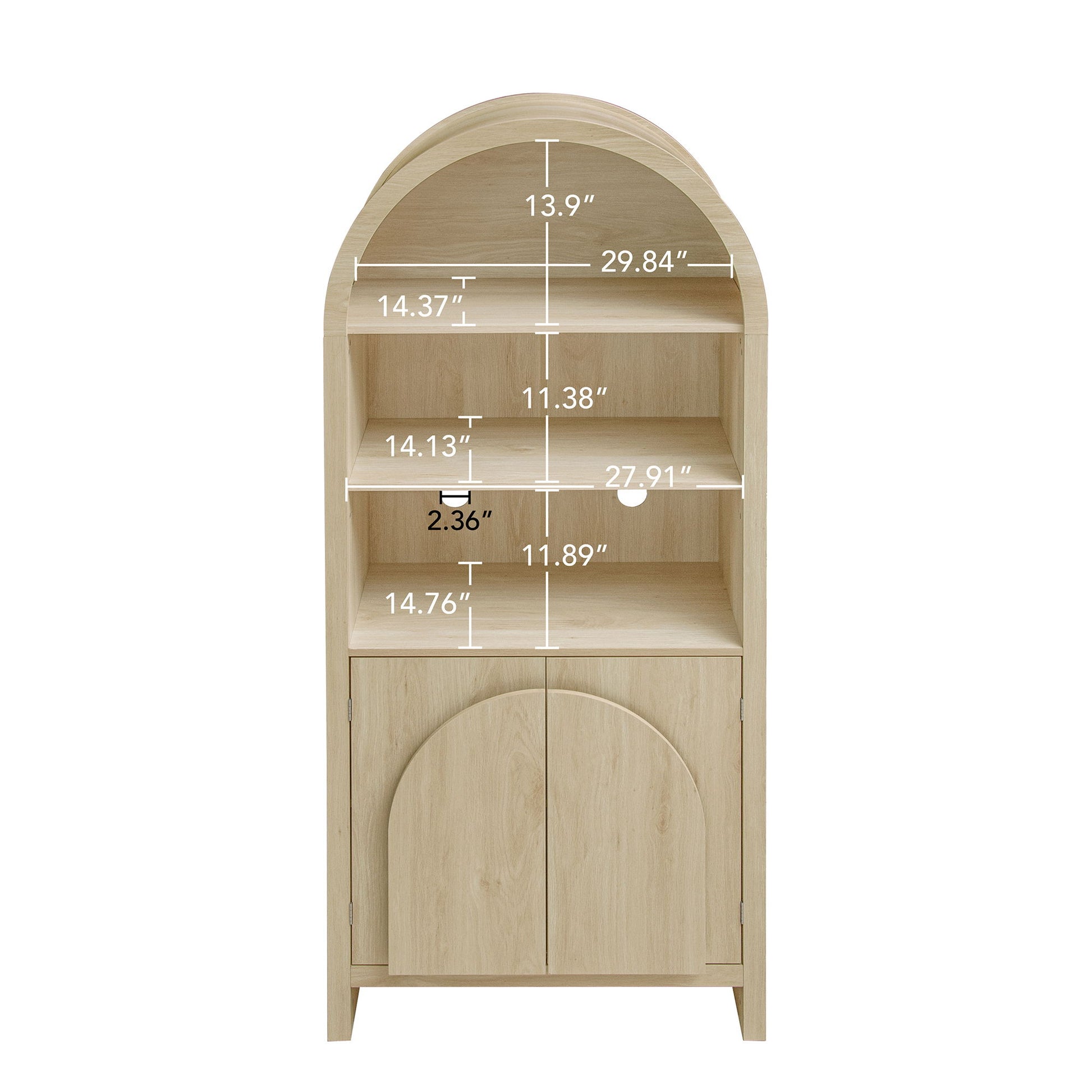 Arched Kitchen Pantry, Modern Farmhouse Wood Kitchen Storage Cabinets, Arched Storage Display Cabinet With Adjustable Shelves, Versatile Cupboard For Kitchen, Dining Room - Natural