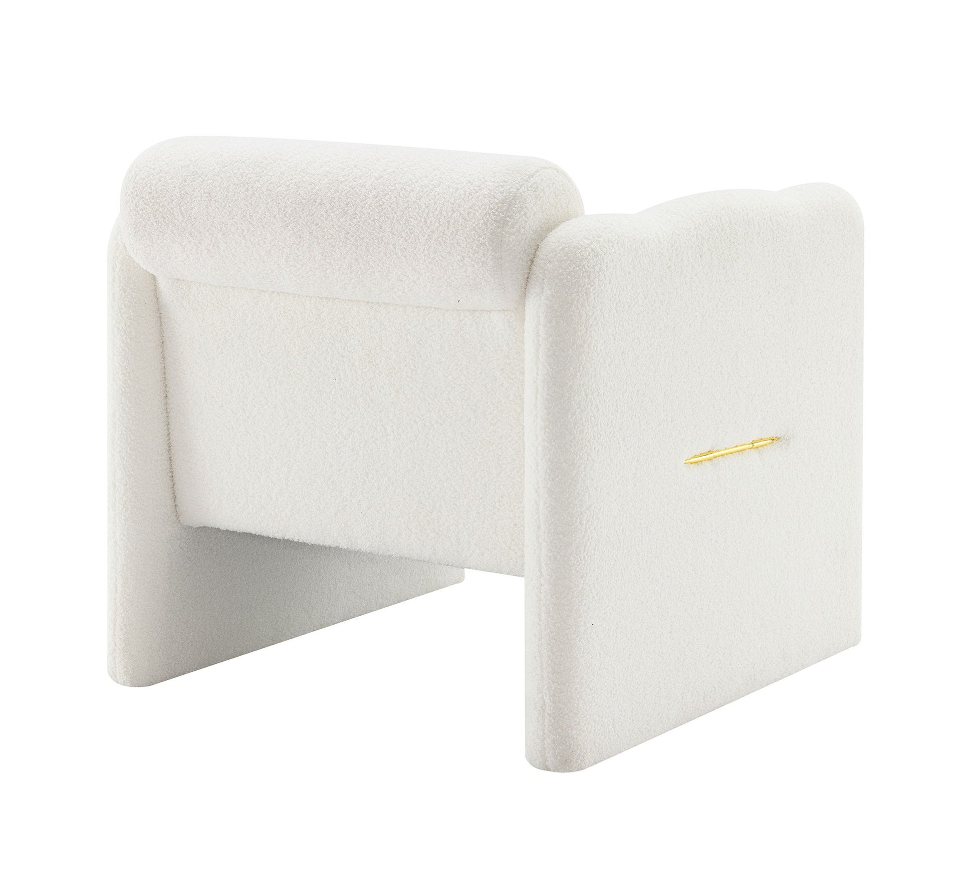 Arm Chair With Waved Arms, Metal Decoration On Both Side Arms, Accent Chair For Primary Living Space, Living Room, Bedroom, Teddy Fabric - White