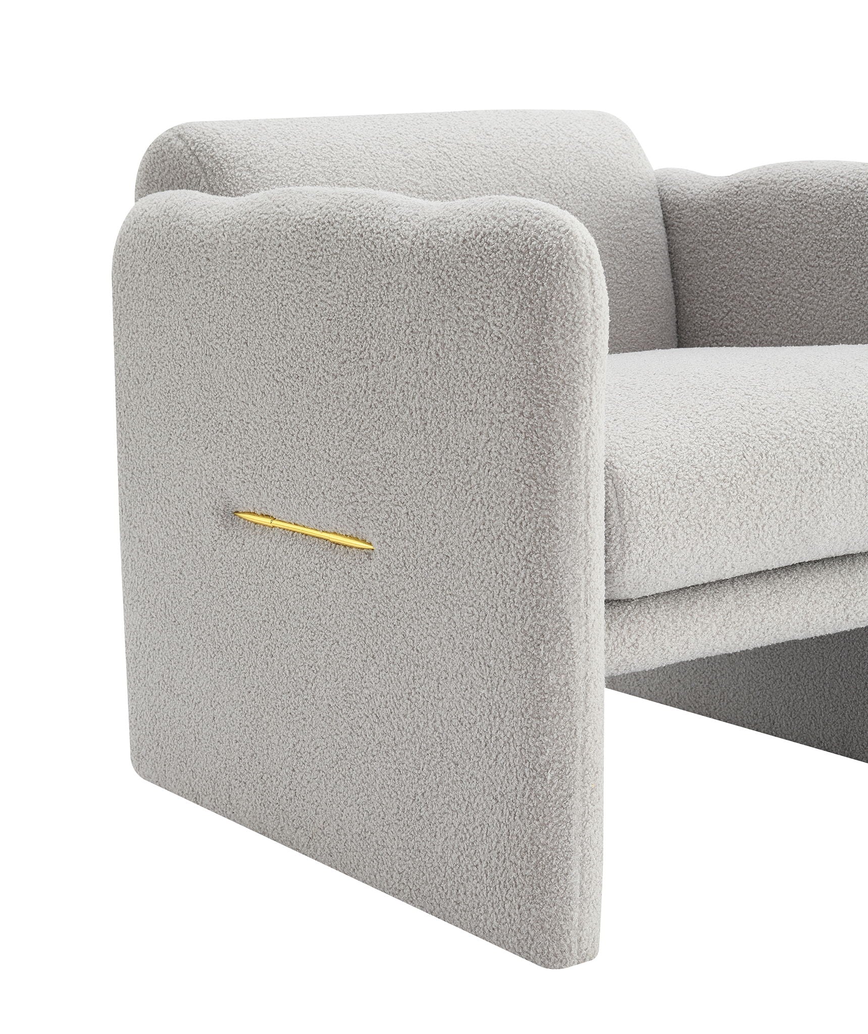 Arm Chair With Waved Arms, Metal Decoration On Both Side Arms, Accent Chair For Primary Living Space, Living Room, Bedroom, Teddy Fabric - Light Gray