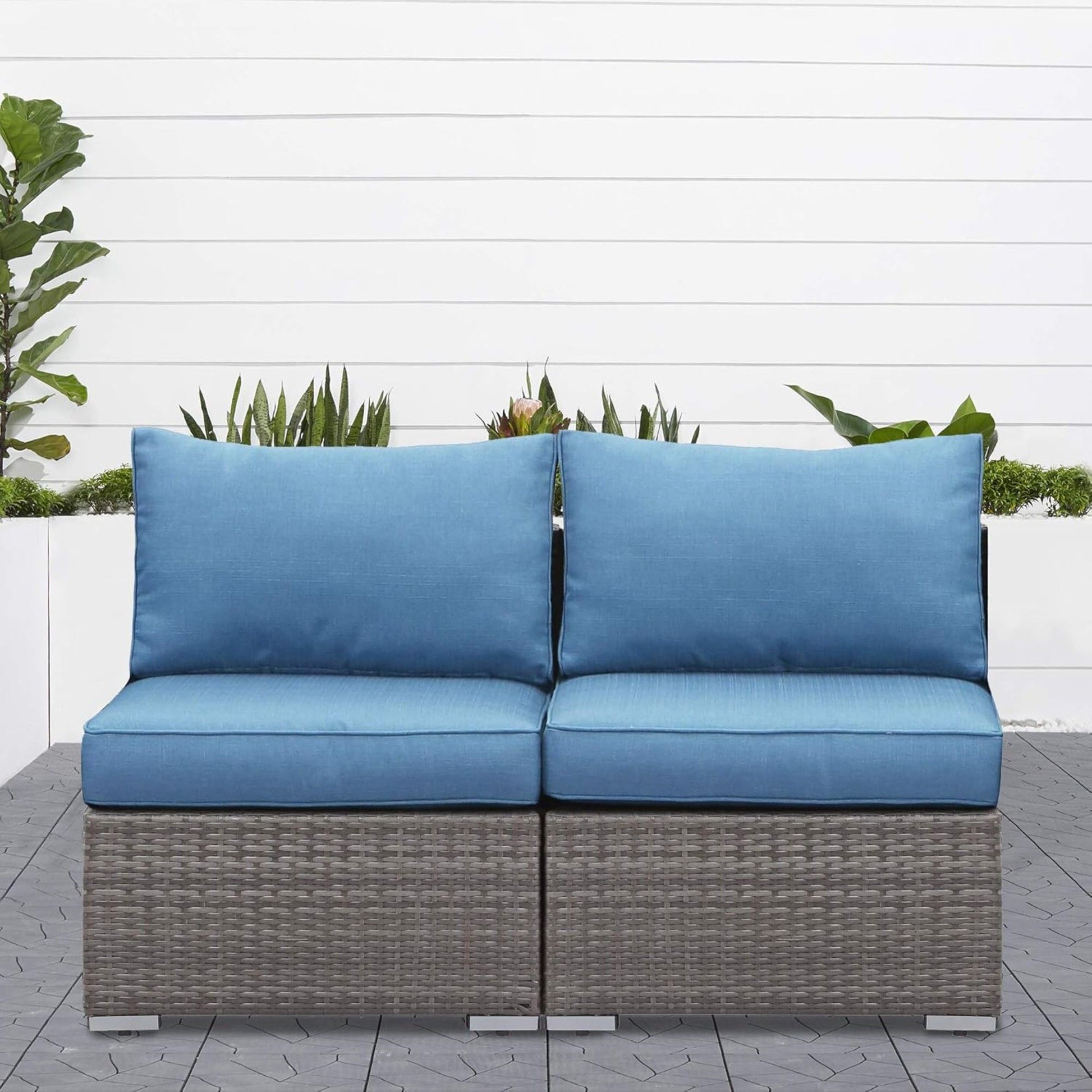 Armless Patio Sofa Set, With UV Resistant Frame And Waterproof Cushions - Blue / Brown