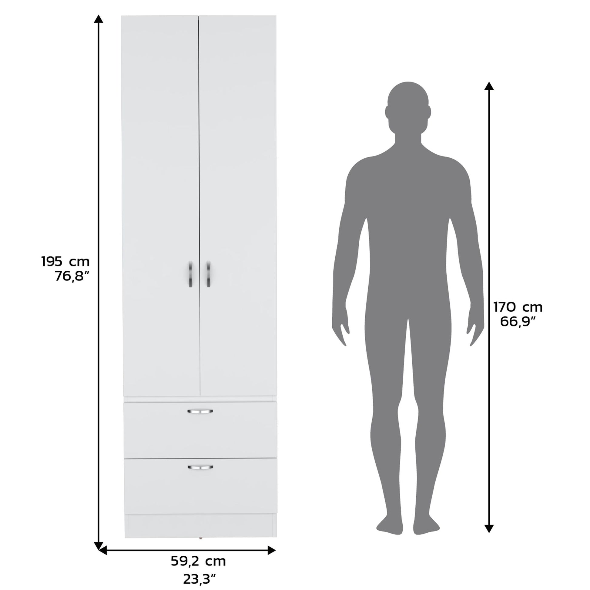 Armoire Wardrove, Hanging Rod, 2 Drawers, 1 Shelf - White
