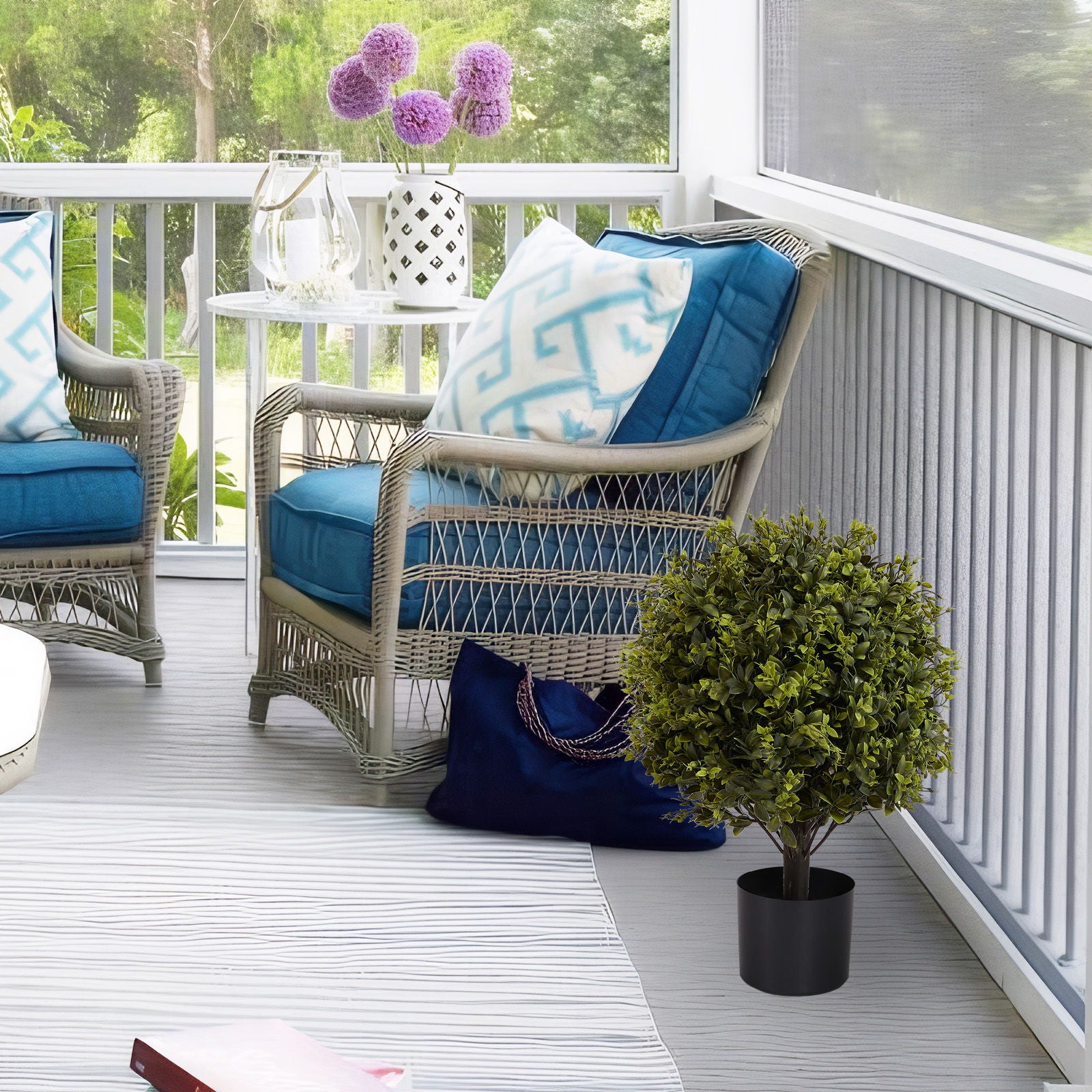 Artificial Ball Topiary Tree Decoration In Pot (Set of 2) - Green