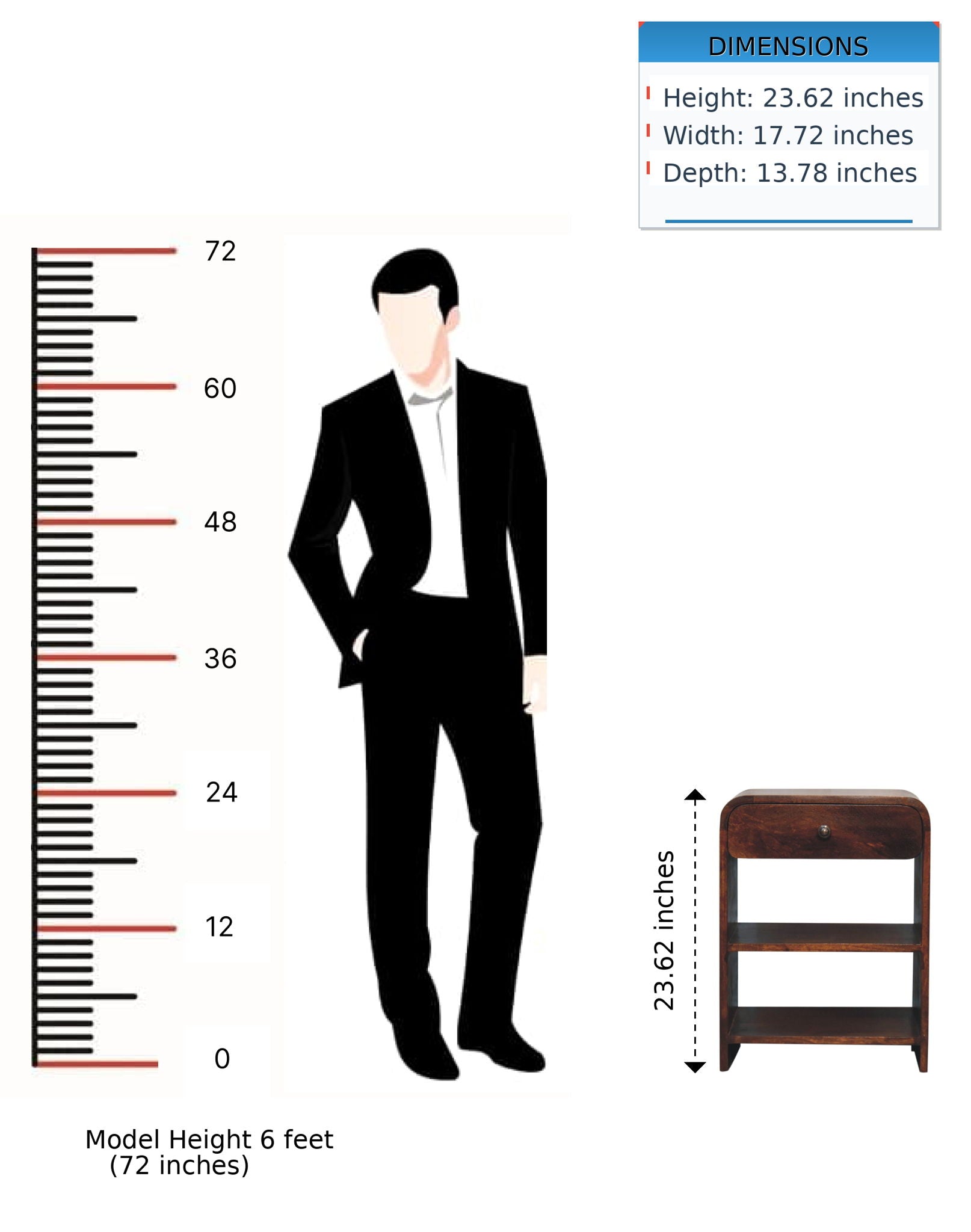 - Artisan Furniture Solid Wood Aspen Open Bedside - Meet the Aspen Bedside, a chic piece crafted from 100% solid mango wood in a rich chestnut finish. It has 1 drawer and 2 open slots, and its smooth corners ensure safety, while its modern design effortlessly harmonizes with various furniture styles. Ideal for adding elegance and convenient storage beside your bed, the Aspen Bedside is a timeless choice for any bedroom.