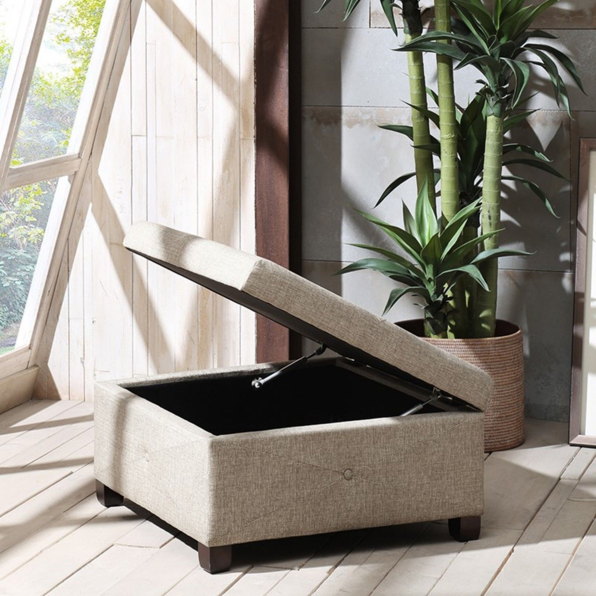 Aspen - Soft Close Storage Ottoman Sand Square Design - Sand