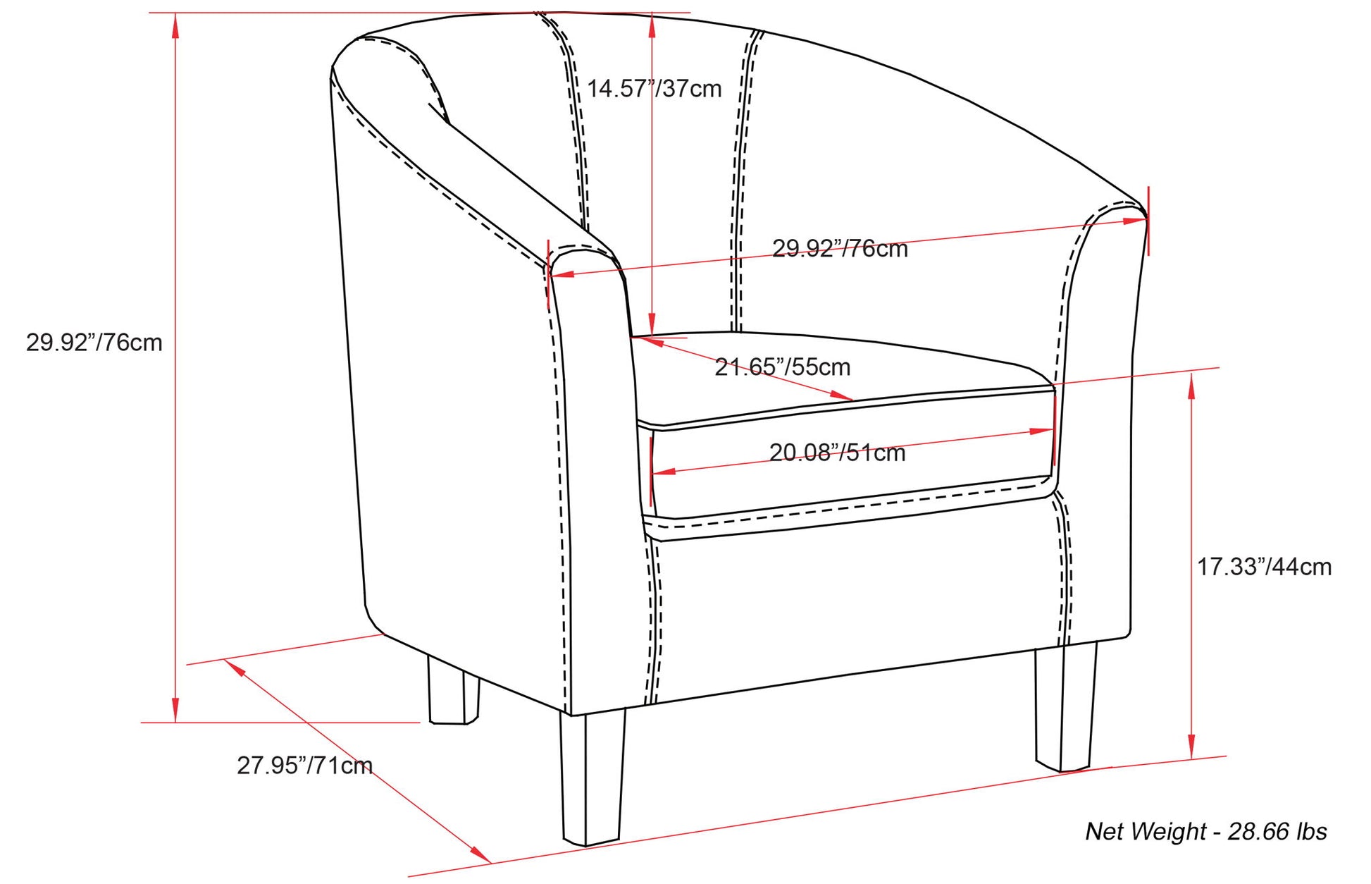 29.9"W x 28.0"D x 30.3"H - 26.5 lb