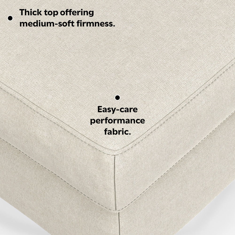 - Eco-Friendly Fabric: Upholstered Performance Fabric, this ottoman uses 100% recycled polyester. It is water-repellent, fire-resistant, and meets the Global Recycled Standard and OEKO-TEX STANDARD 100 for safety and sustainability.