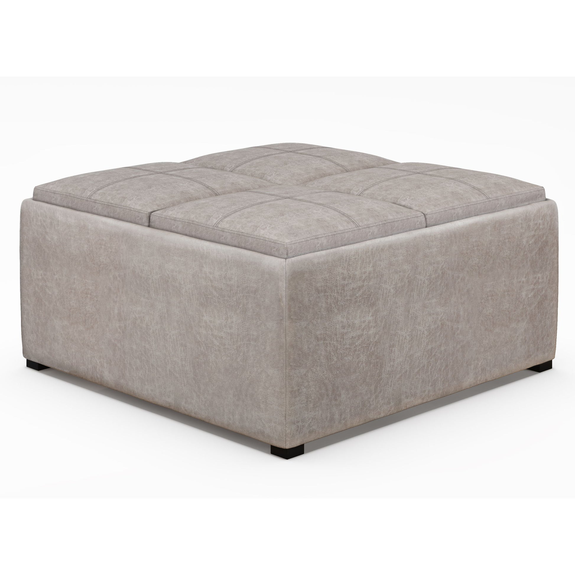 Avalon - Square Coffee Table Storage Ottoman - Distressed Gray Taupe