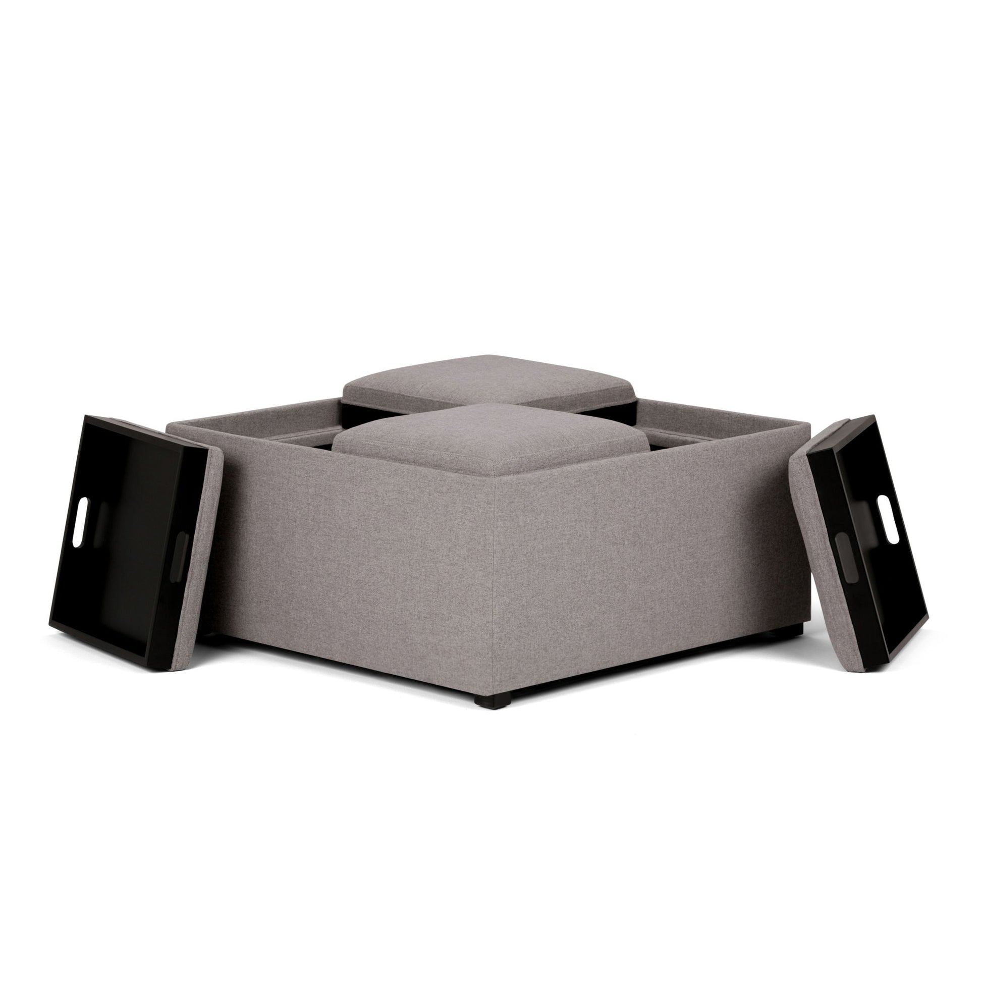 Avalon - Square Coffee Table Storage Ottoman - Cloud Gray