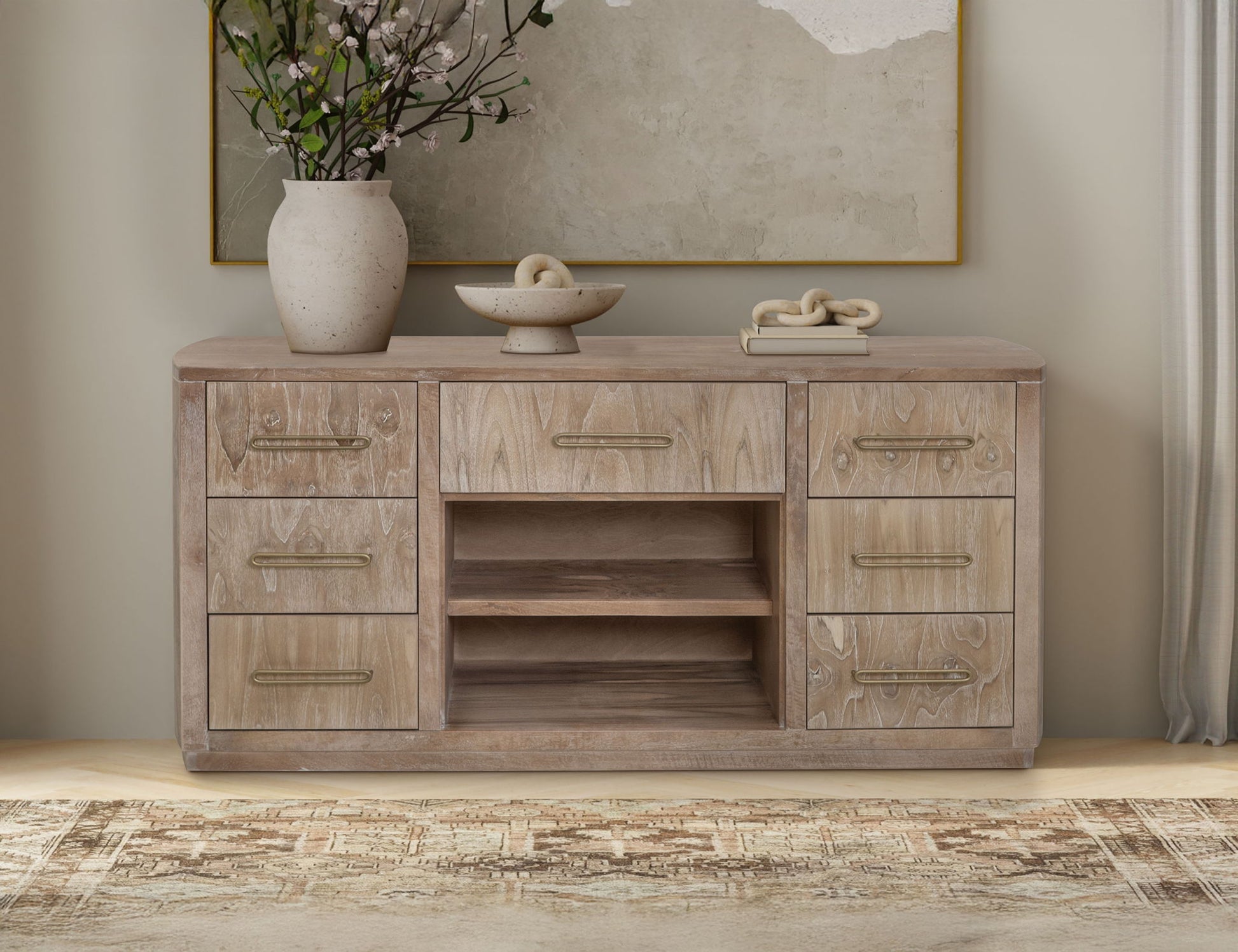 - The White Balam Console features multiple drawers and a fixed shelf, providing ample storage to keep your space organized and stylish.