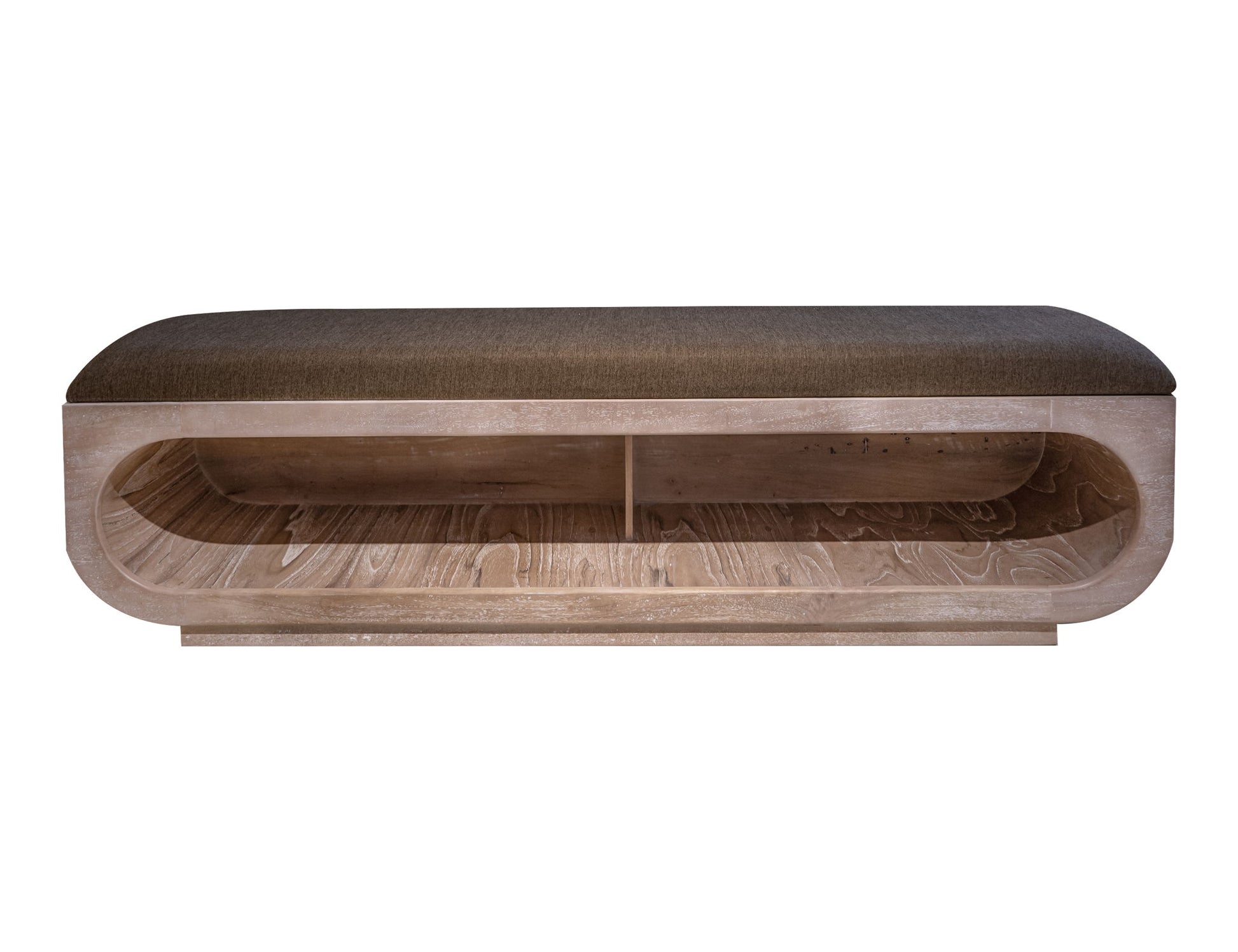 Balam - Wooden Bench With Fabric Cushioned Seat - Ivory White