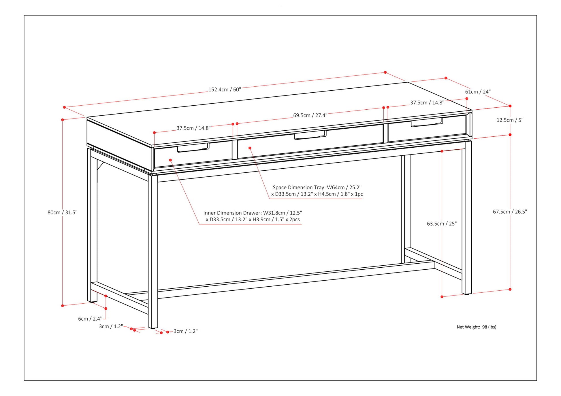 60.0"W x 24.0"D x 31.5"H - 98.1 lb