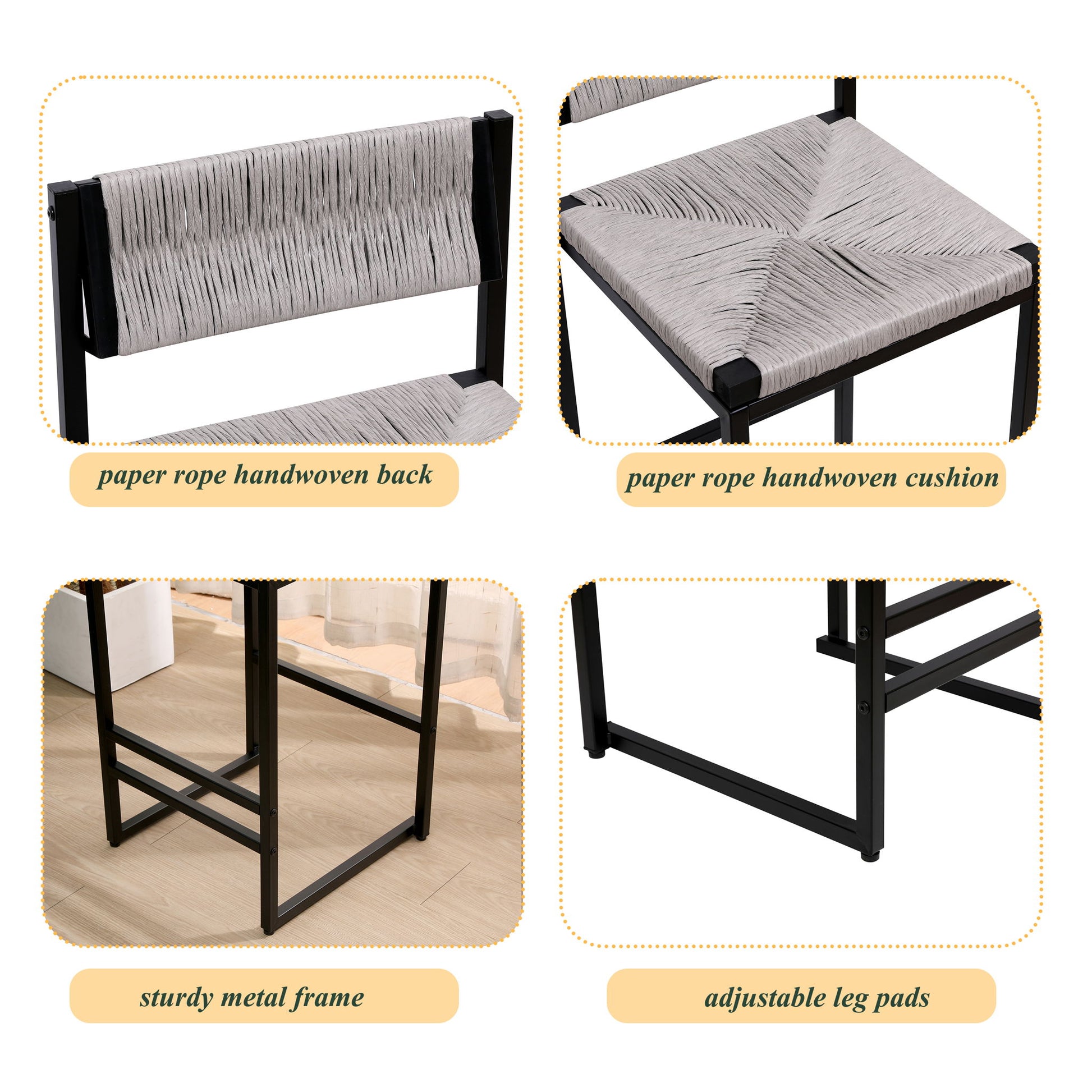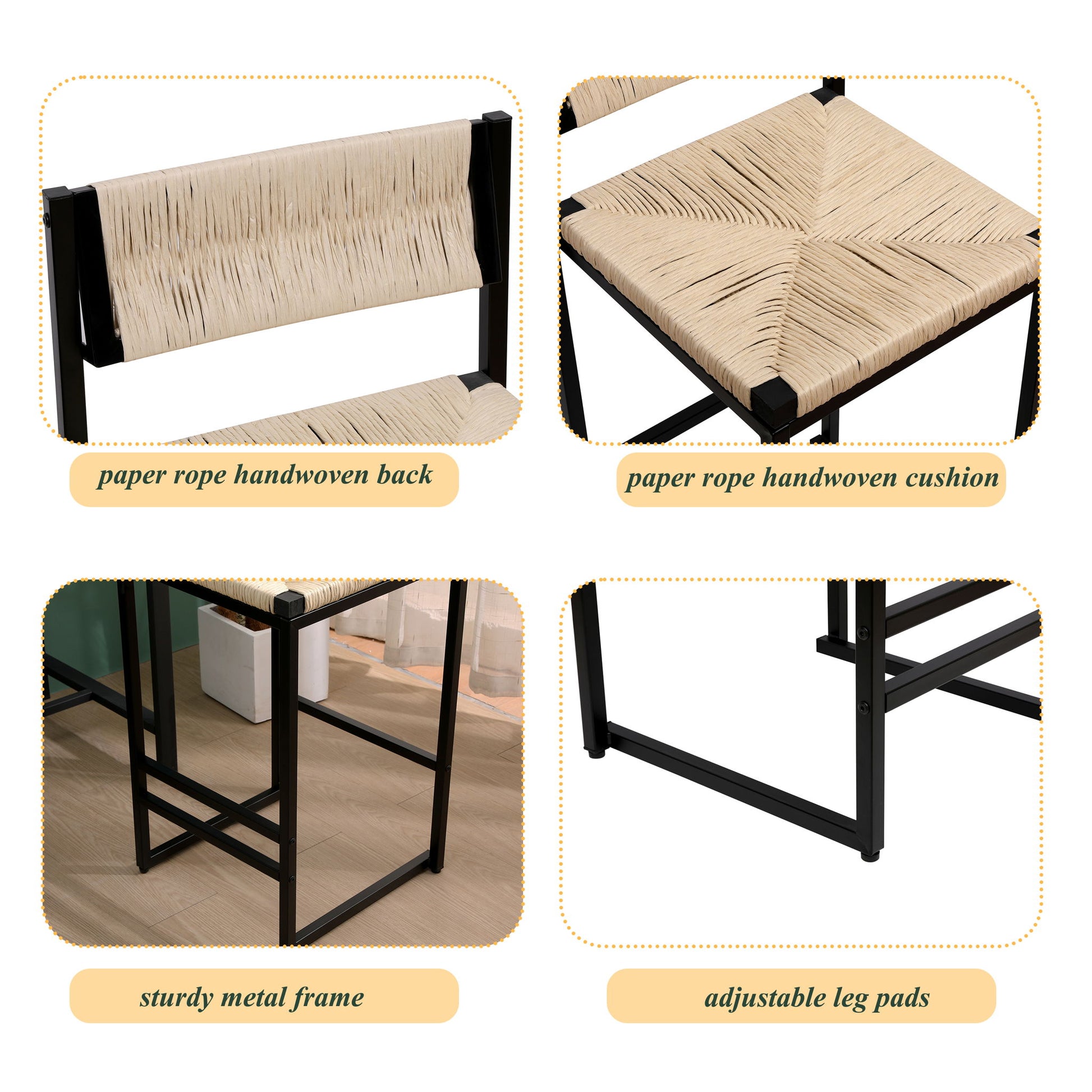 Bar Stools Paper Rope Weave Dining Chairs With Back Hand Weave Stools For Kichen Island, Bar & Counter (Set of 2)
