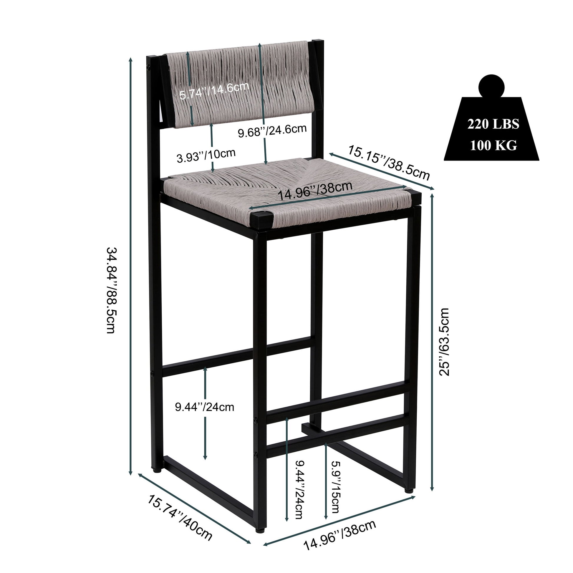 Hand Weave Bar Stools With Back Counter Height Bar Chairs (Set of 2), Paper Rope Woven Dining Stool For Kitchen, Home & Office - Gray