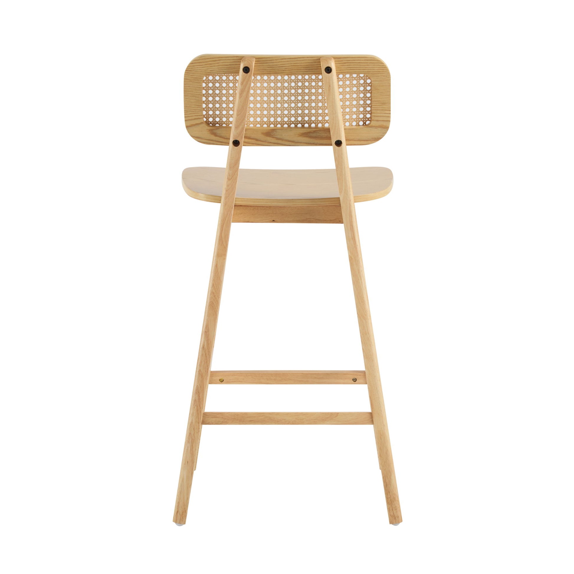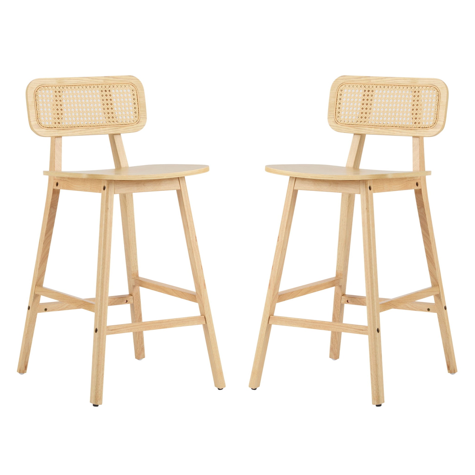 Bari - Indoor Wood Barstool (Set of 2) With And Rattan Backrest - Natural