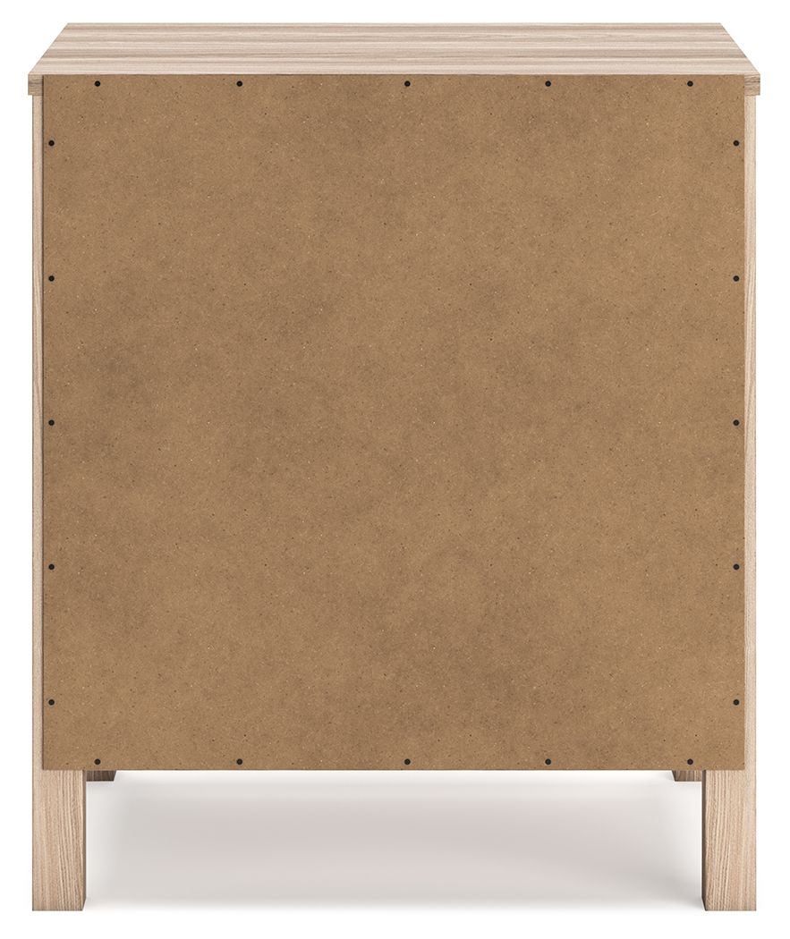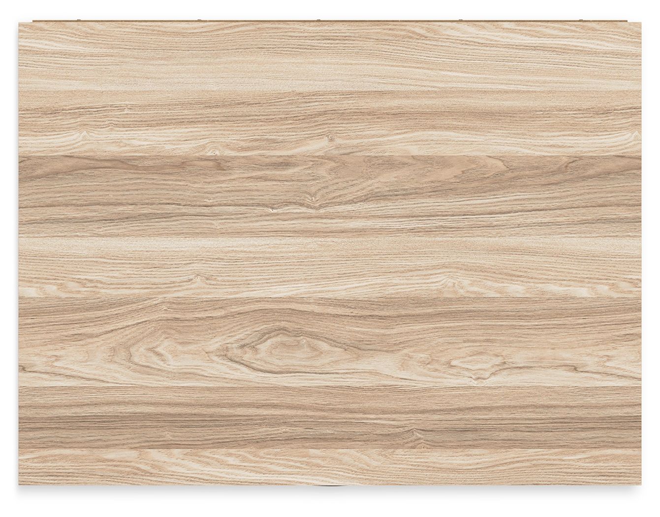 - Two-tone finish (dry, light finish over replicated oak grain; light chevron pattern)
