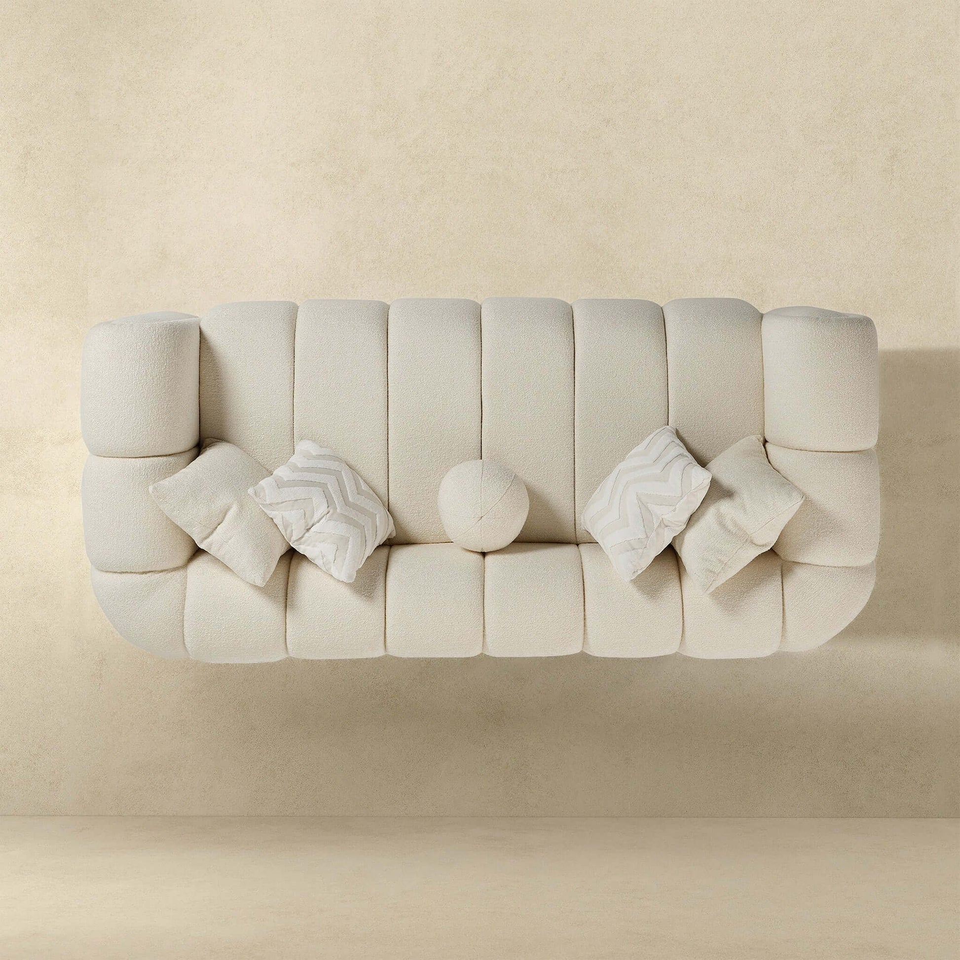 - Elegant Design: The Beatrice Modern Tufted Ivory Boucle Sofa combines mid-century modern charm with contemporary allure, making it a sophisticated centerpiece for any living room.
