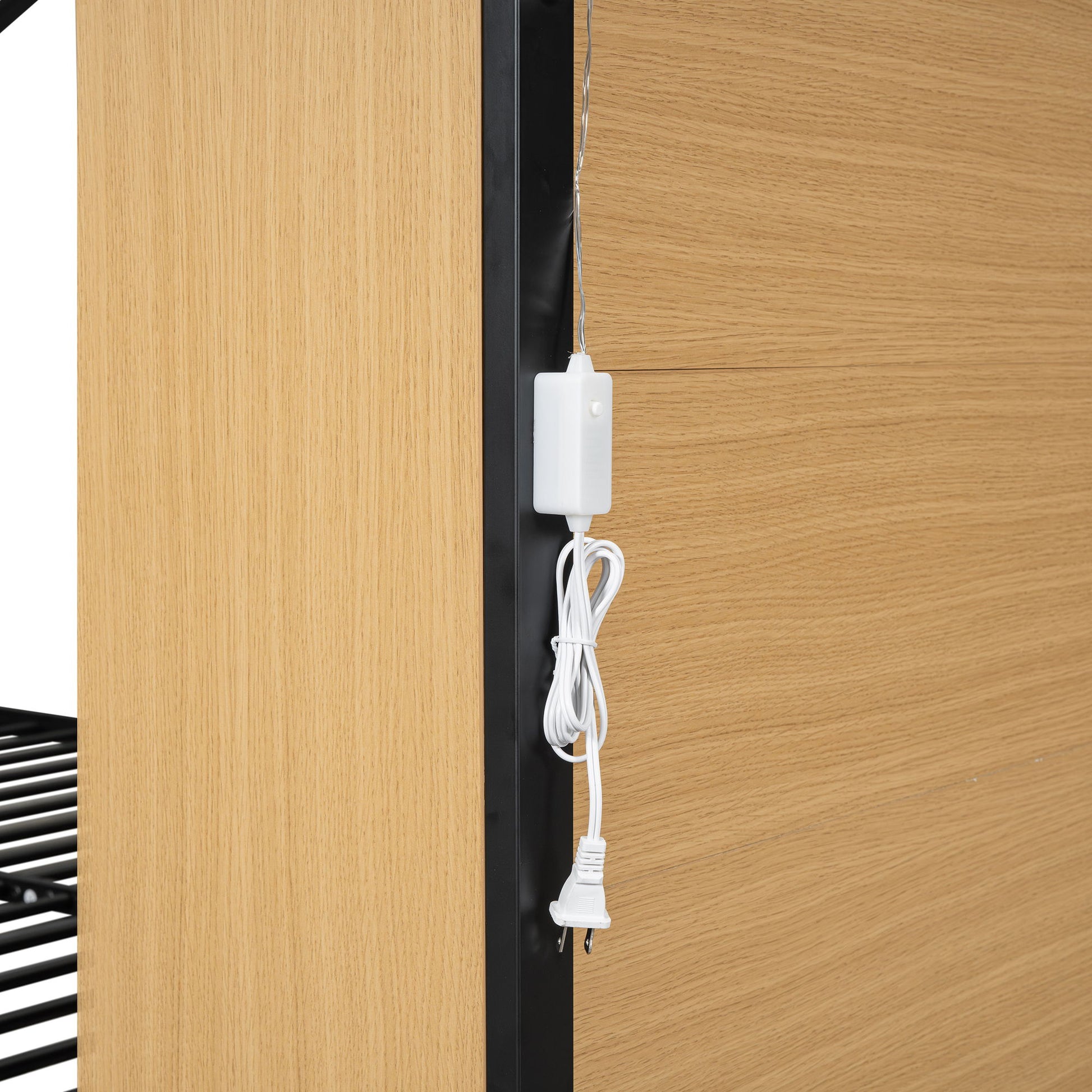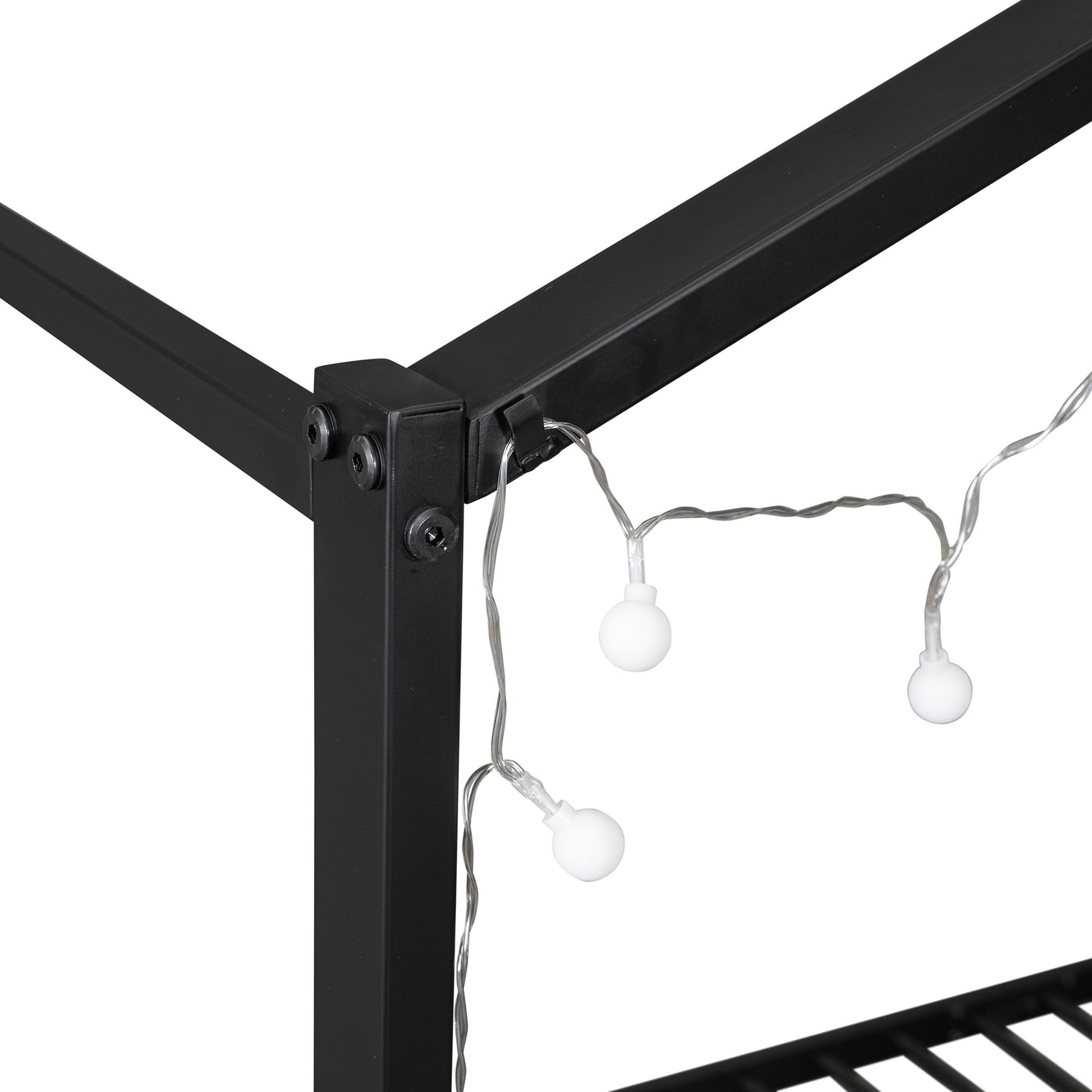 Twin Size Bed House Frame With Shelves And Lights - Black