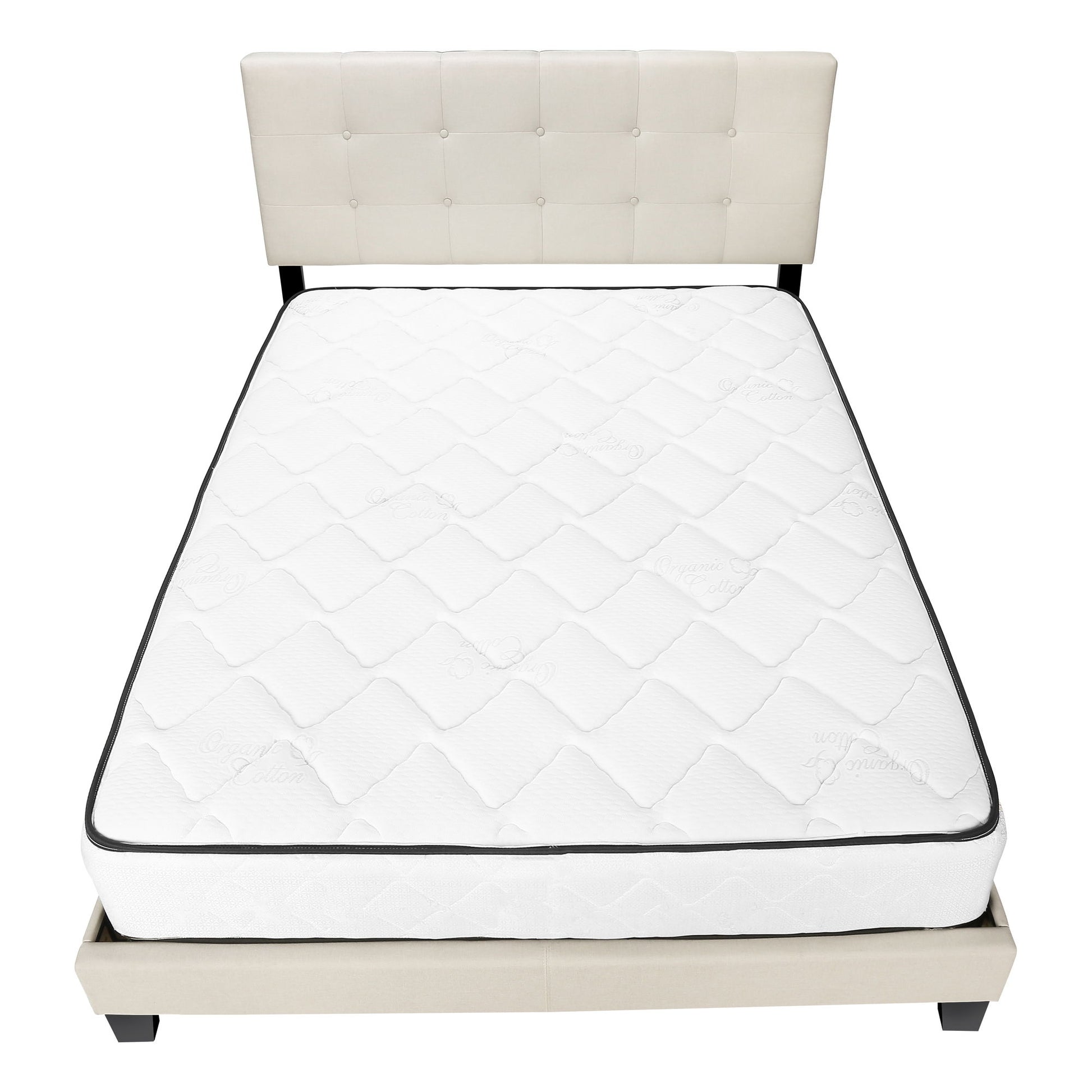 - Comfortable Upholstery: Upholstered in a soft fabric, the bed frame includes thick foam cushioning and a tufted backrest to ensure maximum comfort.