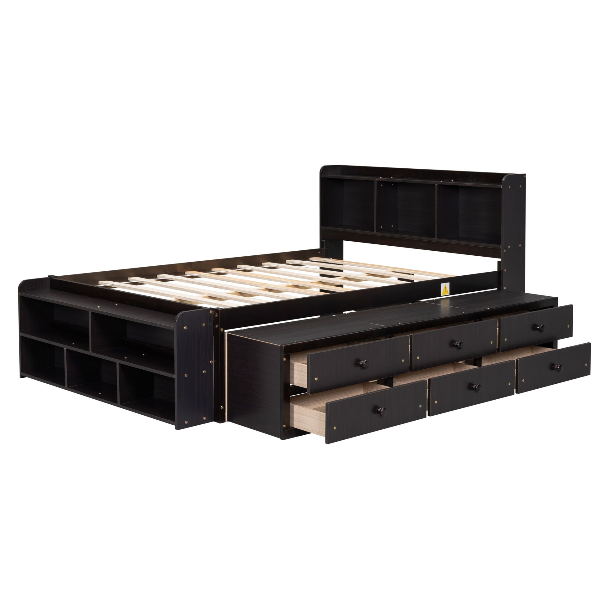 Full Bed With Bookcase Headboard, Under Bed Storage Drawers And Bed End Storage Case - Espresso