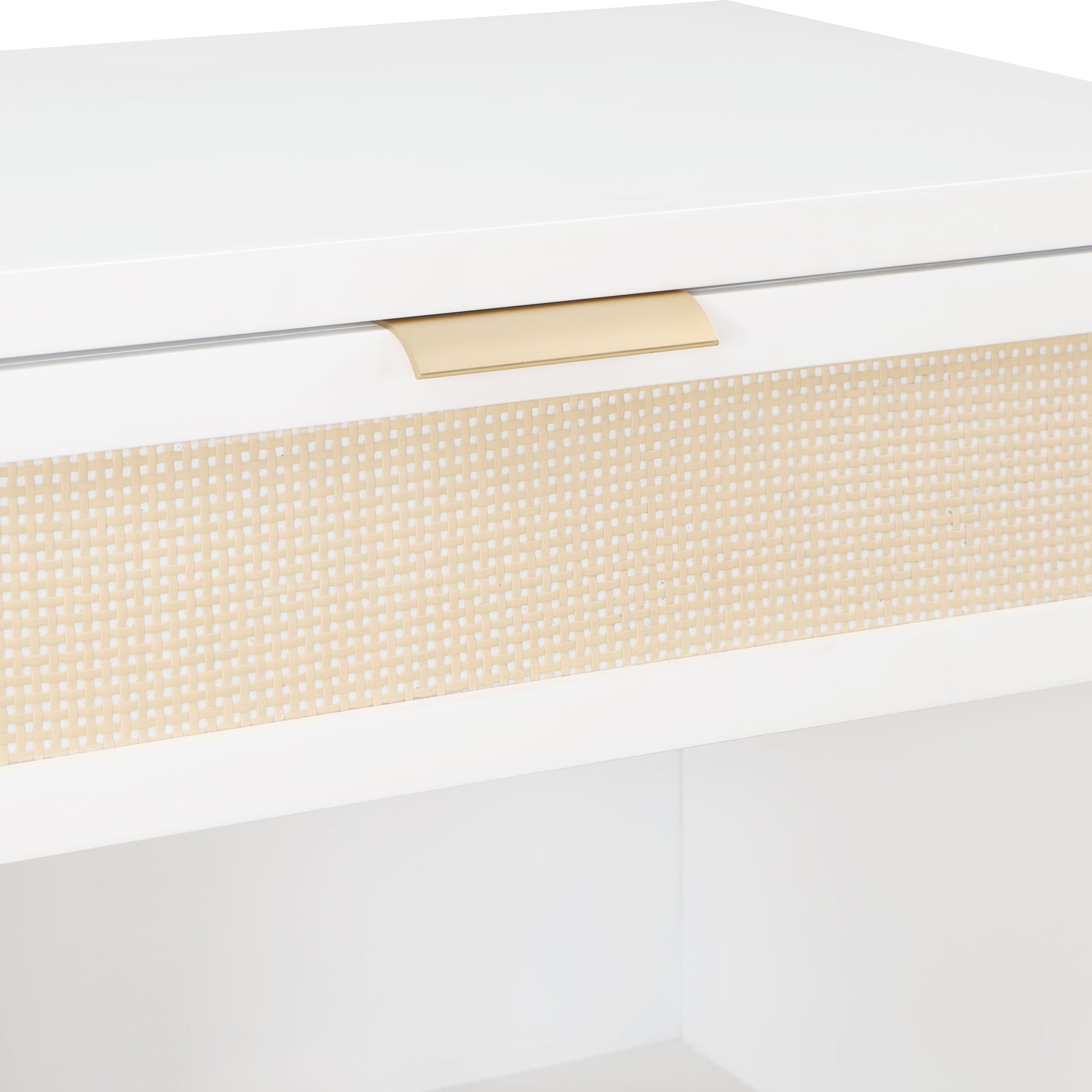 - Coastal Design: Refreshing white finish with elegant cane drawer front complements various bedroom styles