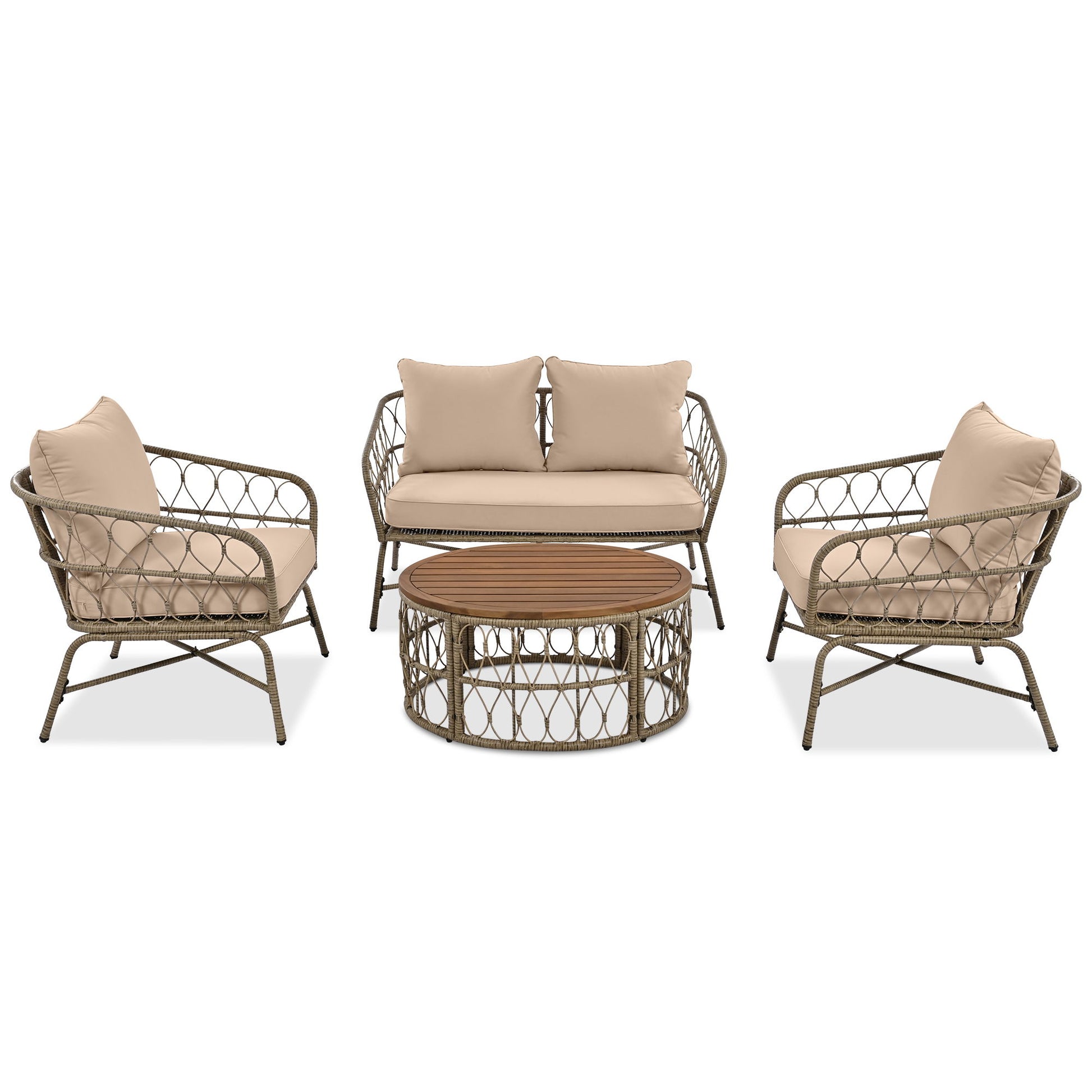 Bohemia-Inspired 4 Person Outdoor Seating Group With Removable Cushions, Conversation Patio Set With Wood Tabletop - Beige