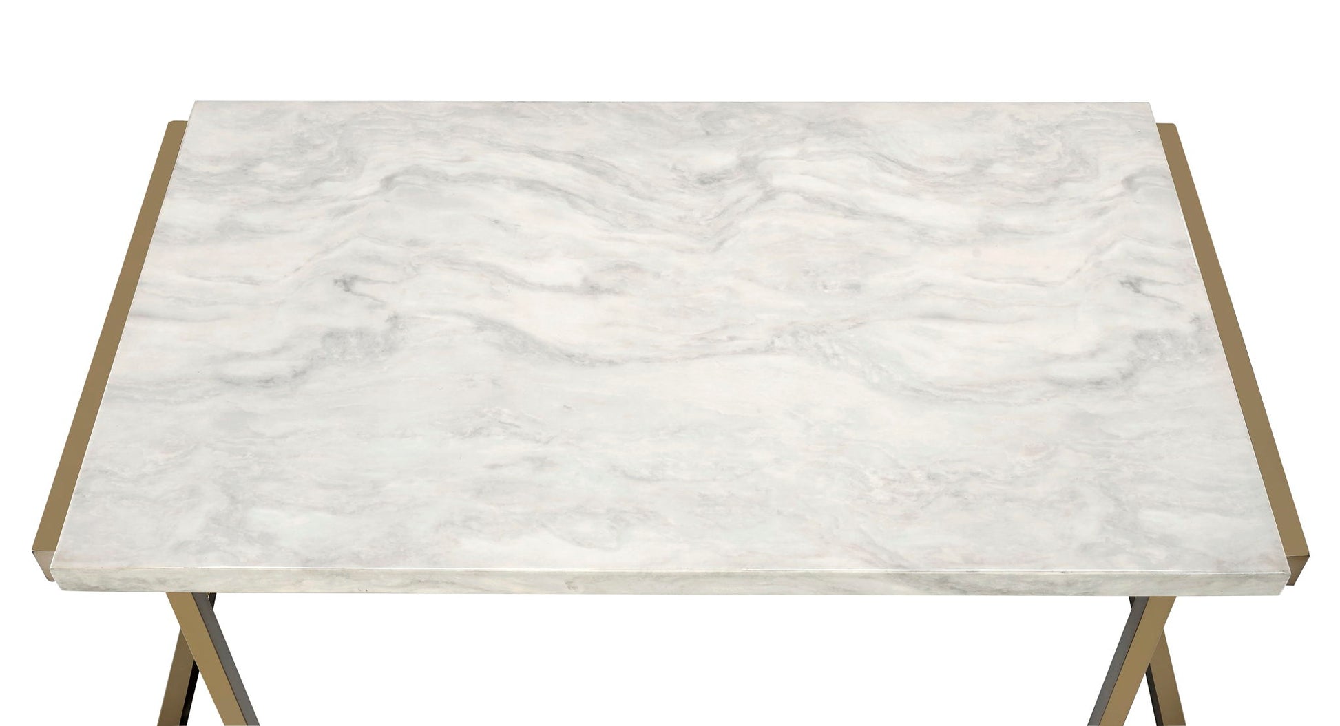 Boice II - Faux Marble Top Sofa Table - White / Champagne