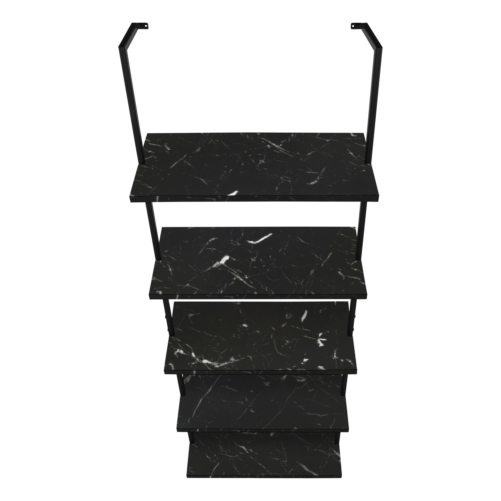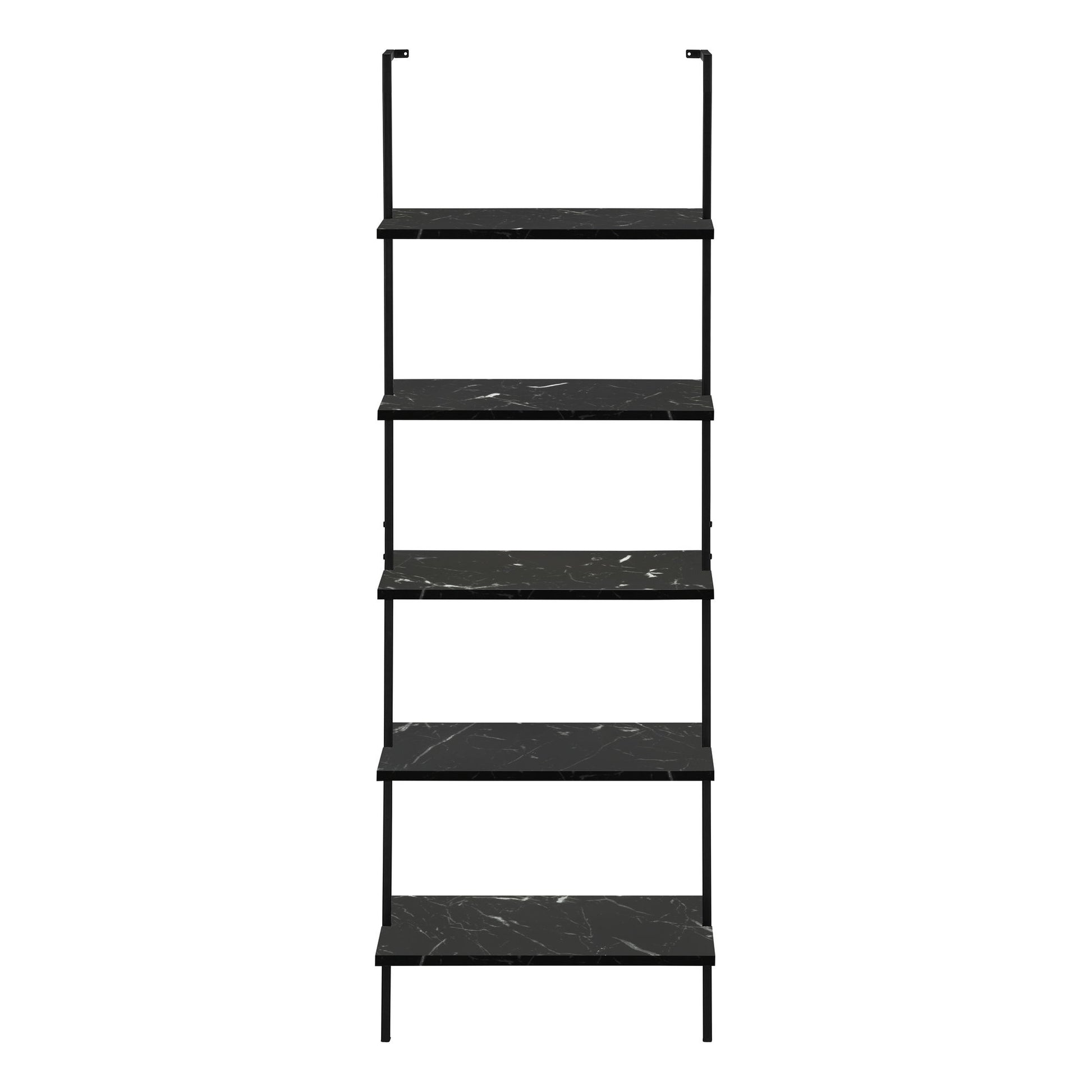 Bookshelf, Bookcase, Etagere, Ladder, 5 Tier, For Office, Marble Look Contemporary & Modern - Black