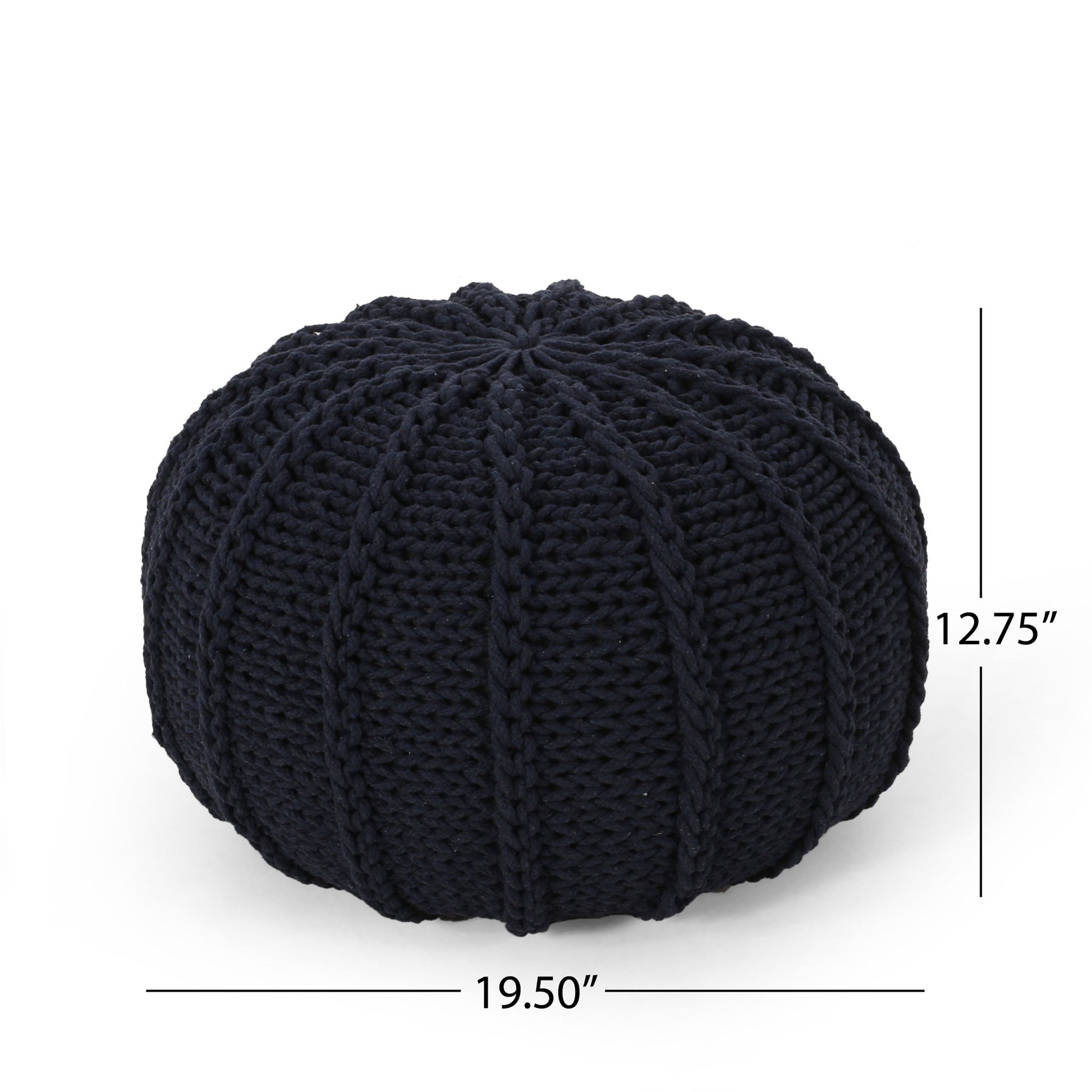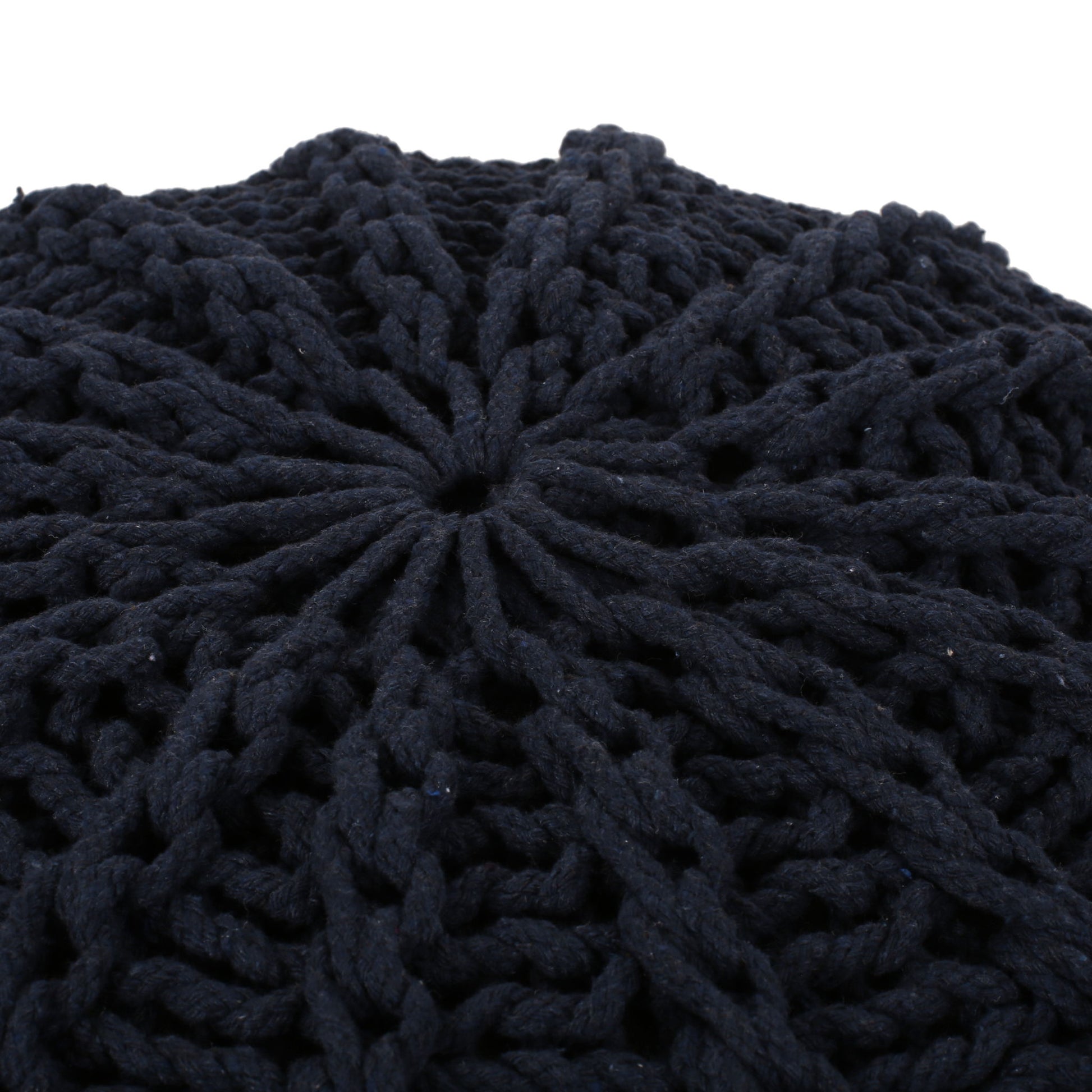 Bordeaux - Knitted Cotton Round Pouf Ottoman And Floor Cushion - Dark Blue