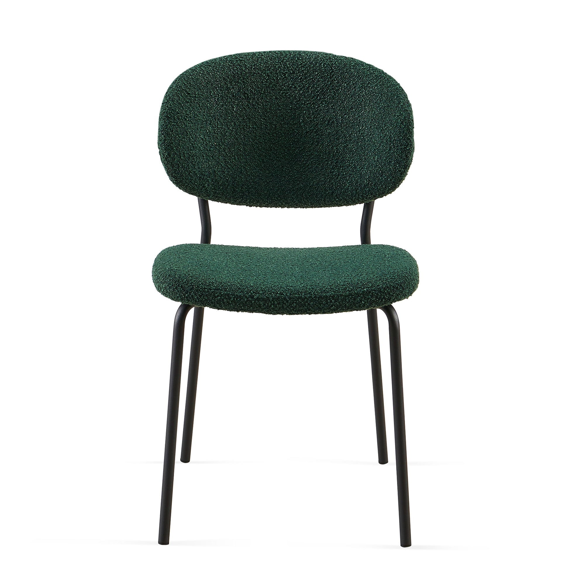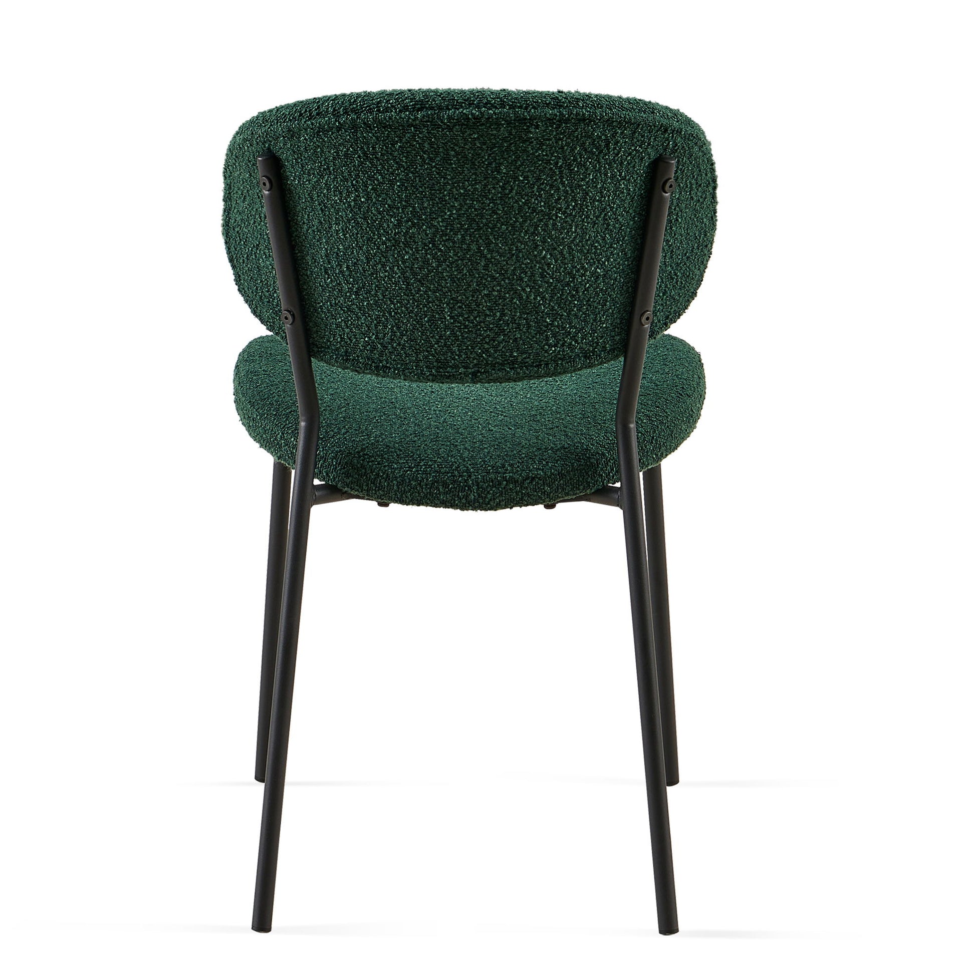 Boucle Dining Chairs, Modern Dining Room Chairs With Black Metal Legs, Armless Kitchen Chair For Dining Room, Living Room (Set of 4) - Dark Green
