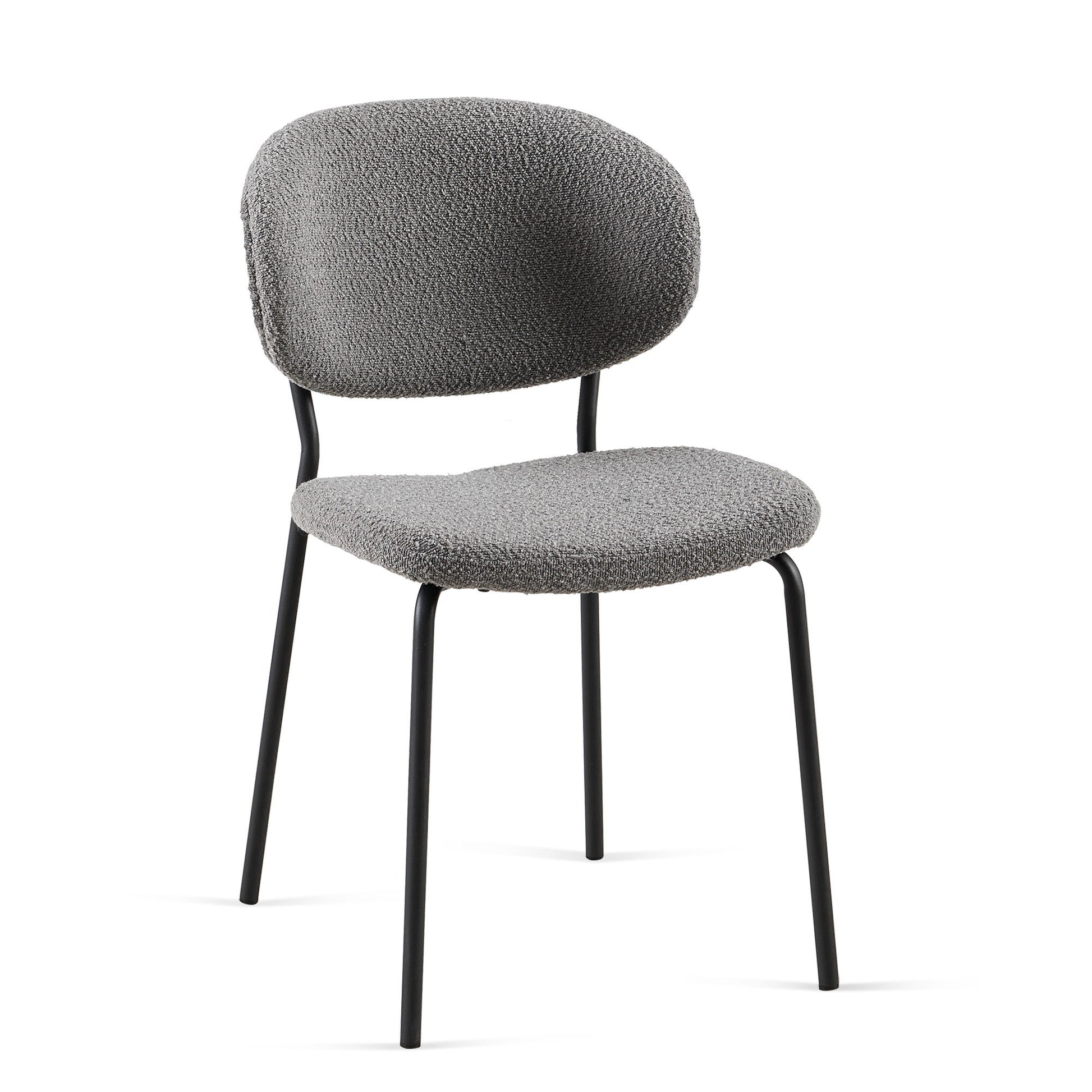 Boucle Dining Chairs, Modern Dining Room Chairs With Black Metal Legs, Armless Kitchen Chair For Dining Room, Living Room (Set of 4) - Gray