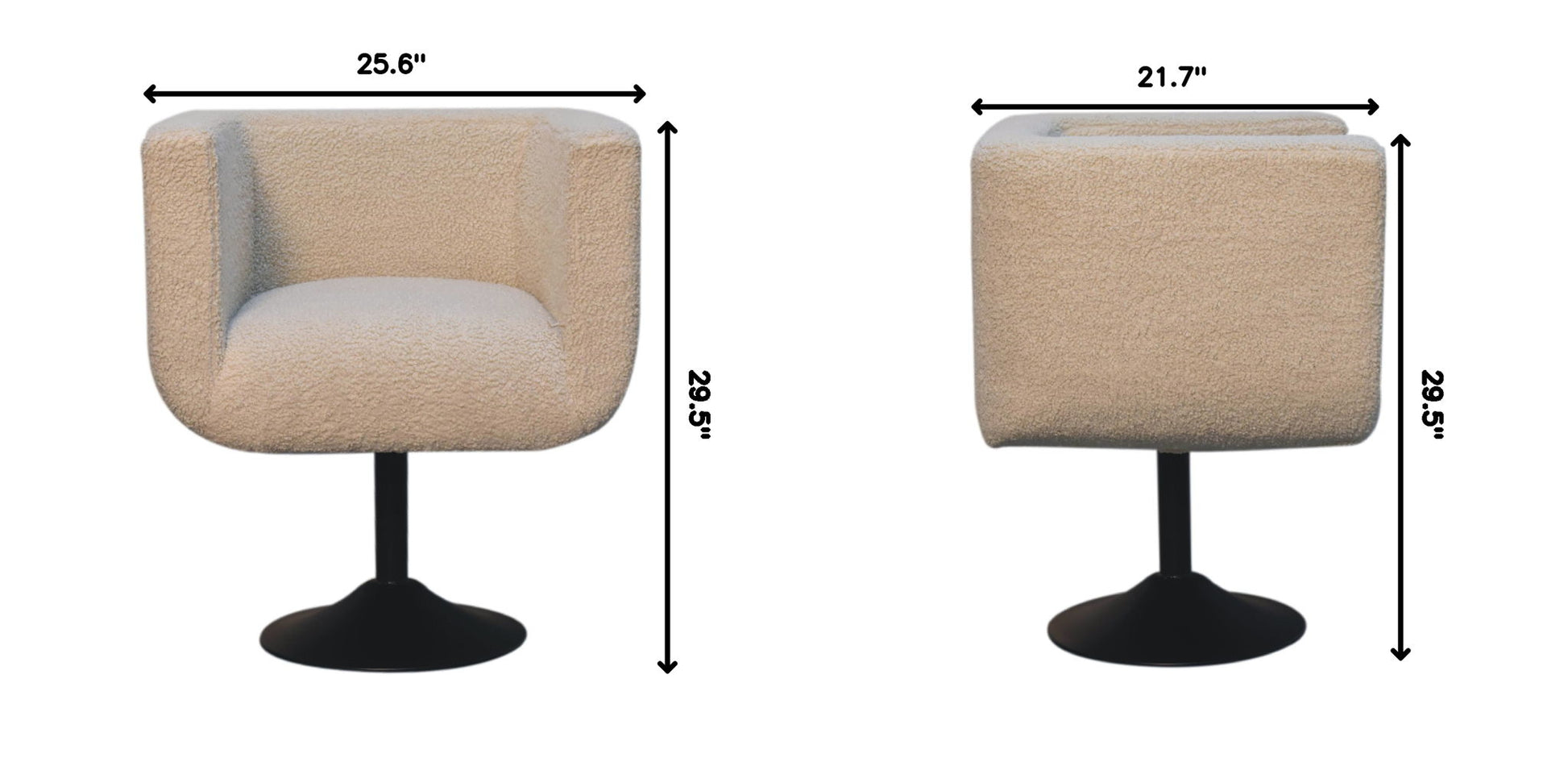 - Cream Boucle Swivel Chair - Embrace comfort and style with our cream boucle upholstered swivel chair. Whether placed in a bedroom or study room, this occasional chair seamlessly blends in with its simple yet elegant design. Its versatile swivel base allows for easy movement and height adjustment, ensuring a personalized seating experience.