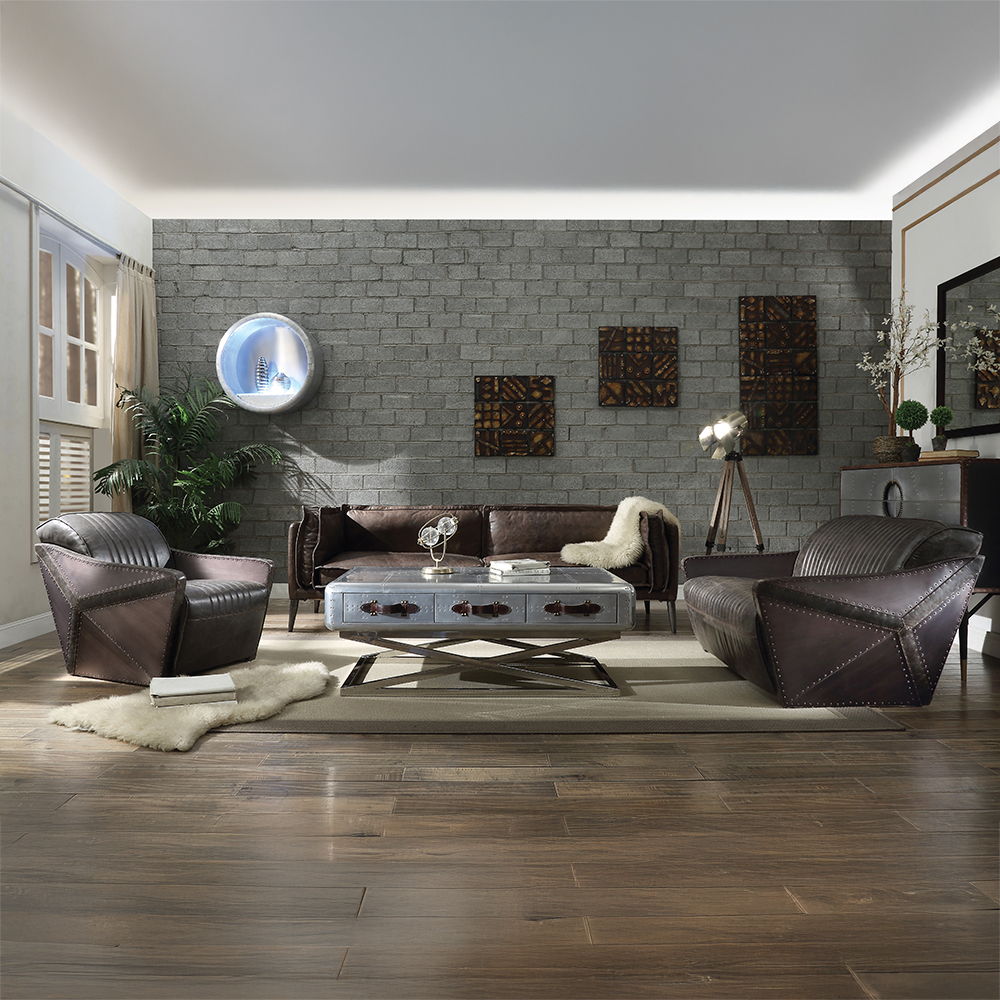 - Materials: Aluminum, Top Grain Leather, Metal Legs, Composite Wood