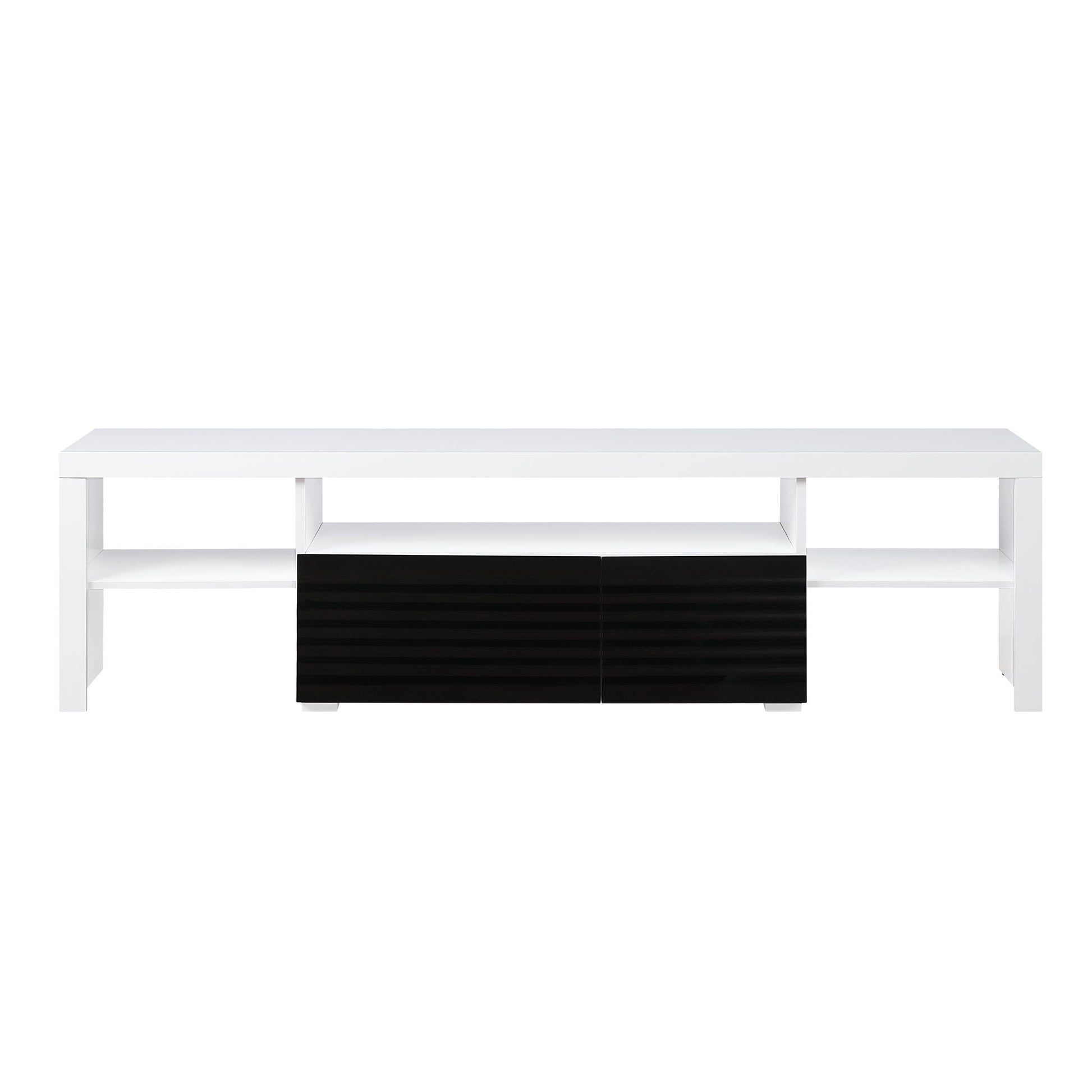 - High Gloss Finish: The Buck II TV Stand features a sleek high gloss finish in a stylish black and white color scheme, enhancing the contemporary look of your living space.