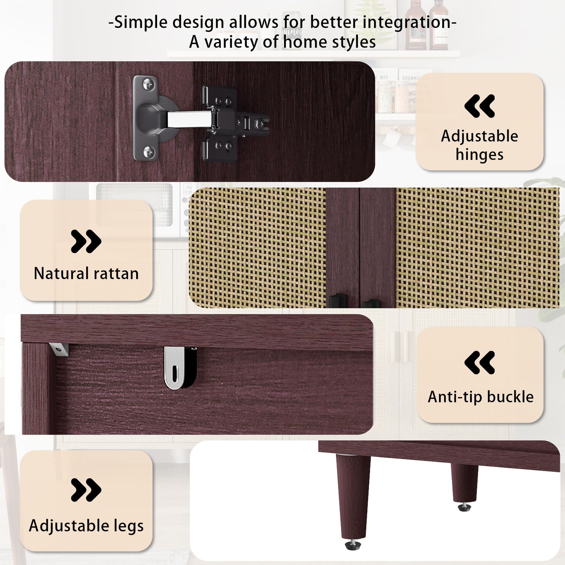 - Practical and Stylish: Combines elegant rattan detailing with functional layout for a modern yet timeless look