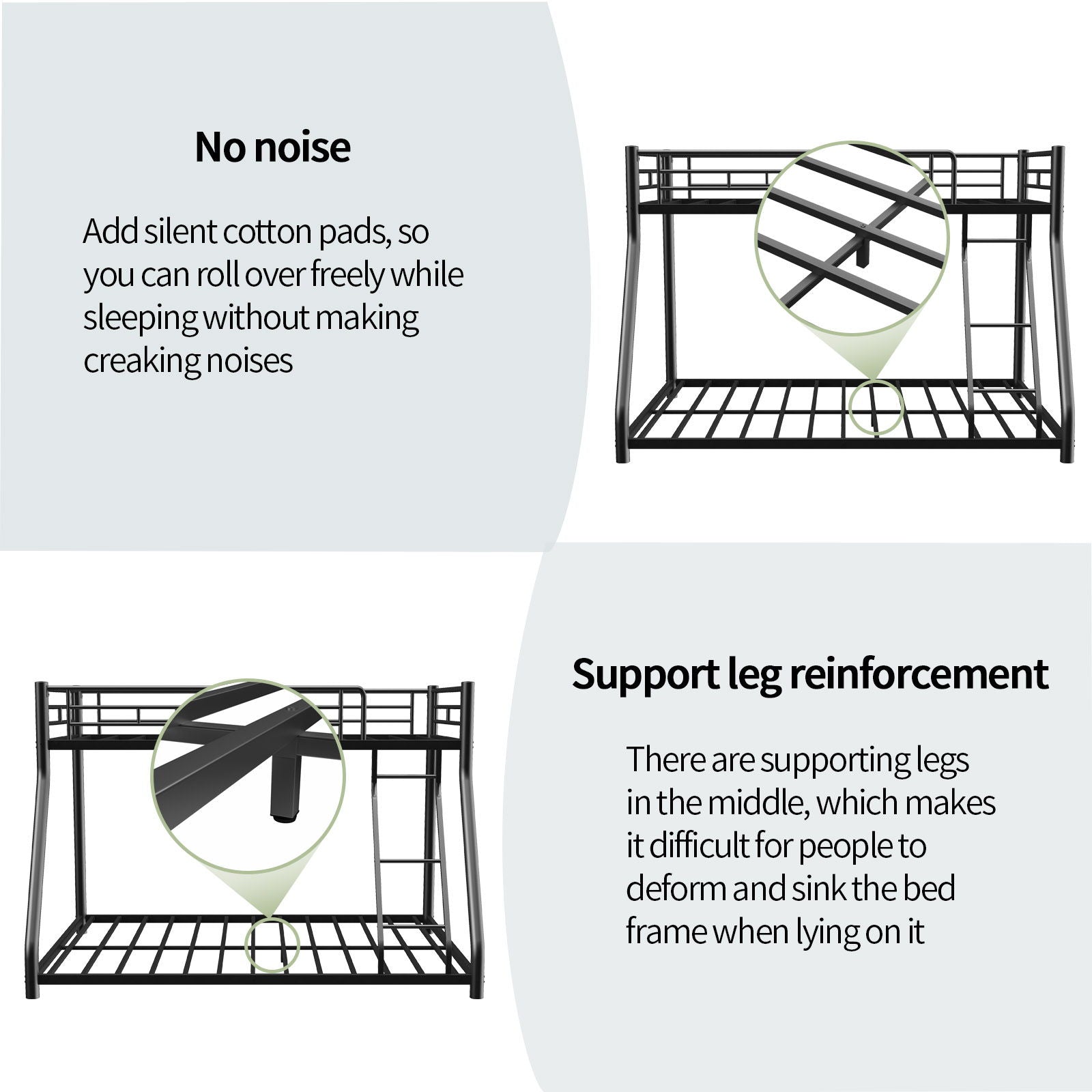 Twin Over Full Metal Bunk Bed Frame With Ladder And Guardrail, Heavy Duty Noise Free Design Metal Construction - Black