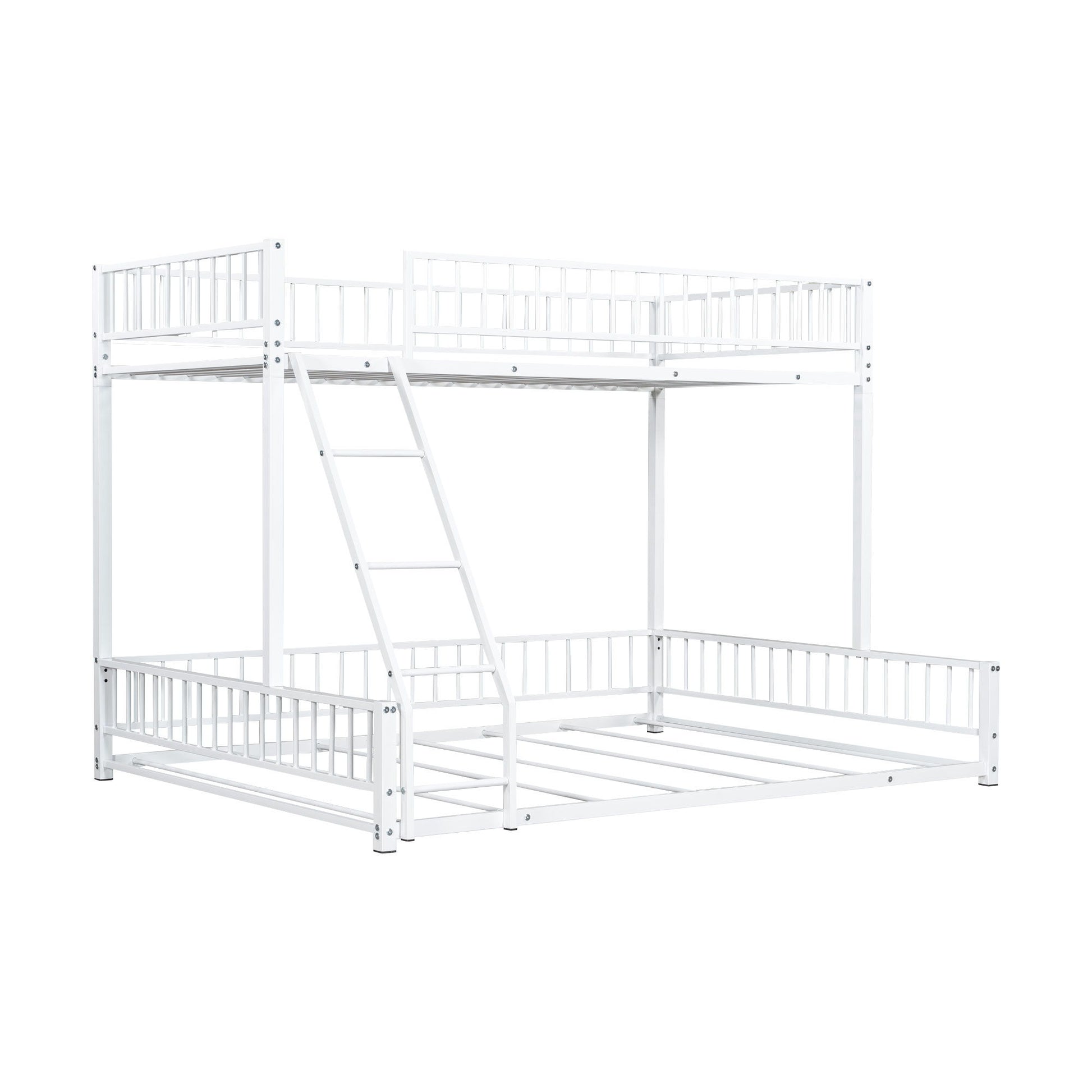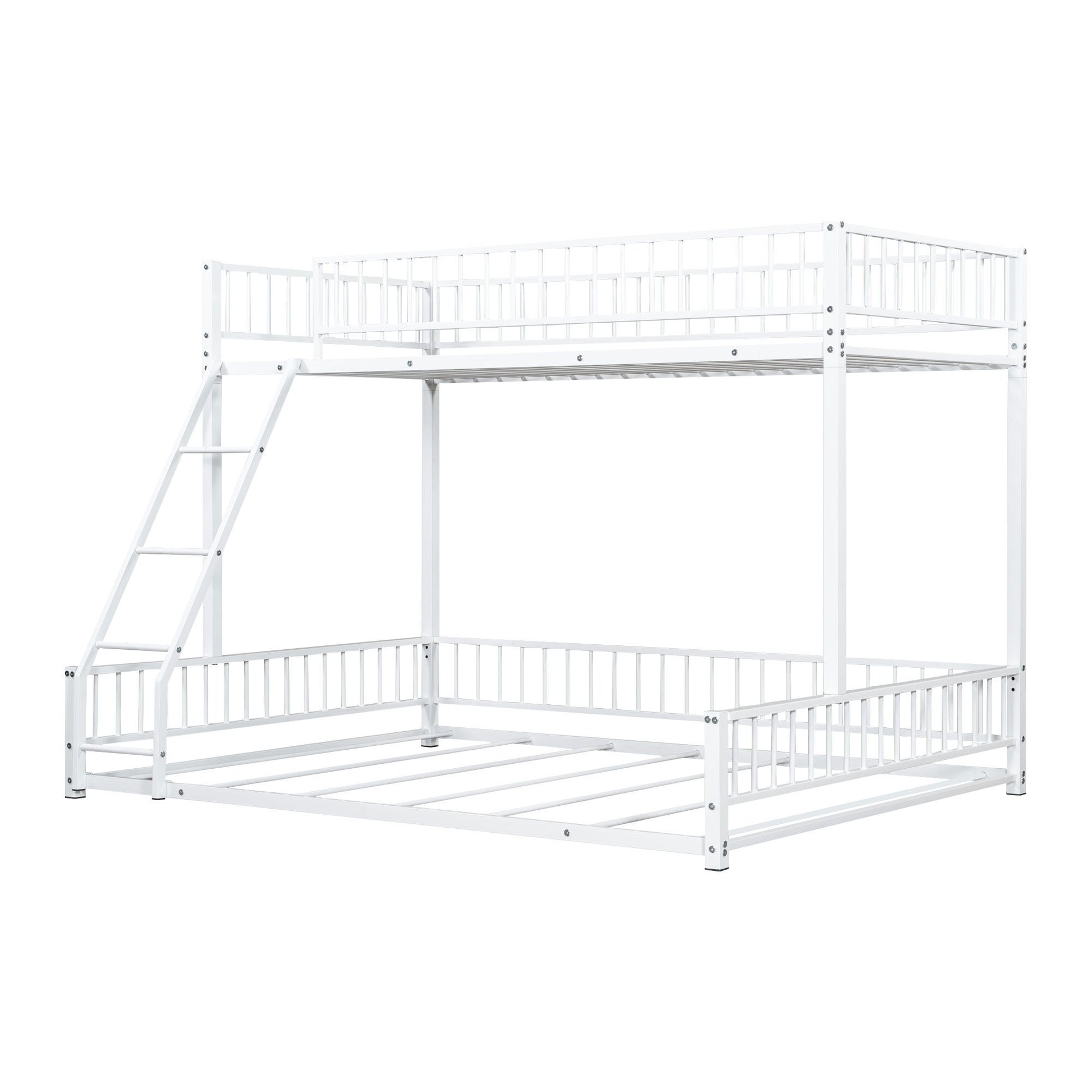Twin Long Over Queen Bunk Bed Frame With Ladder And Safety Guardrails - White