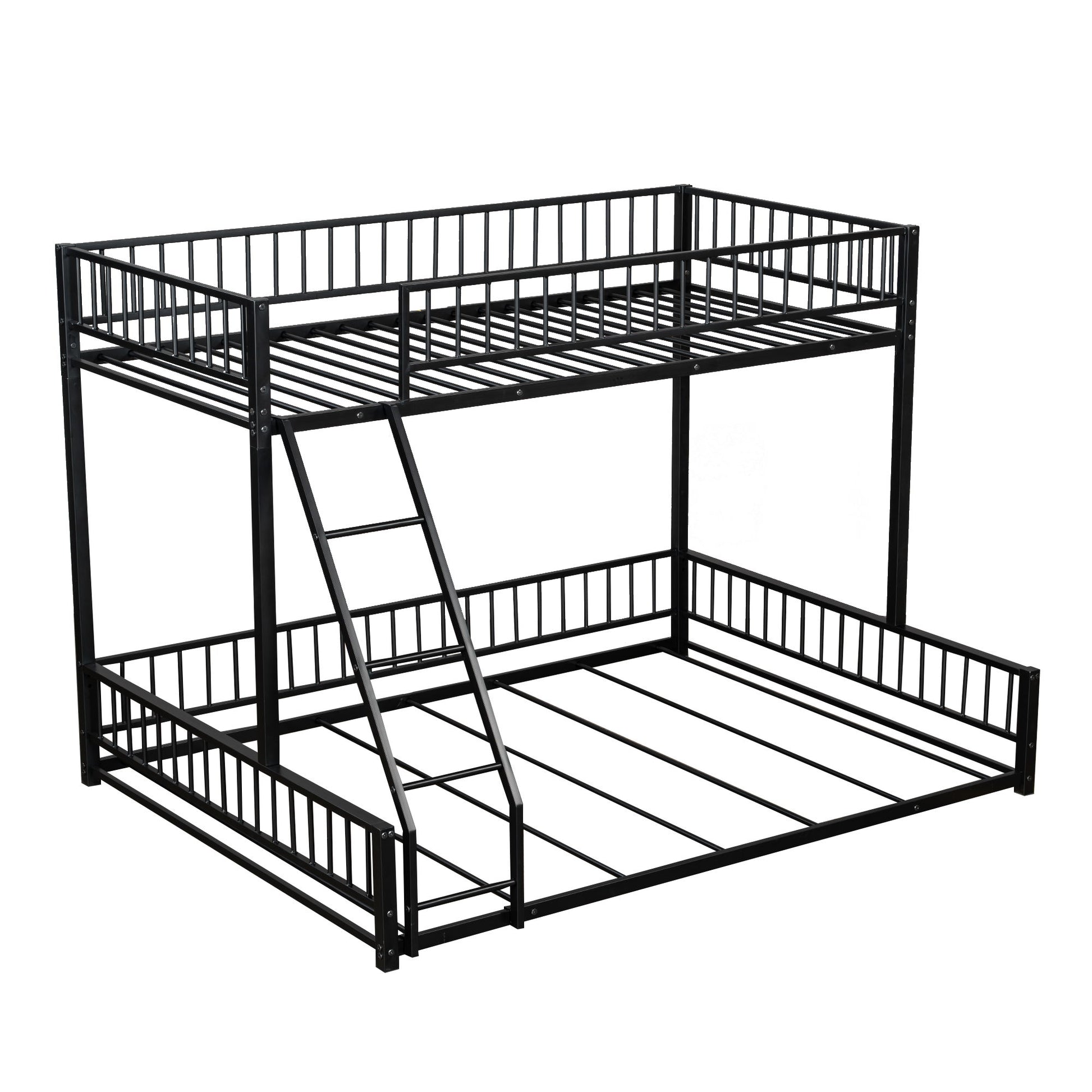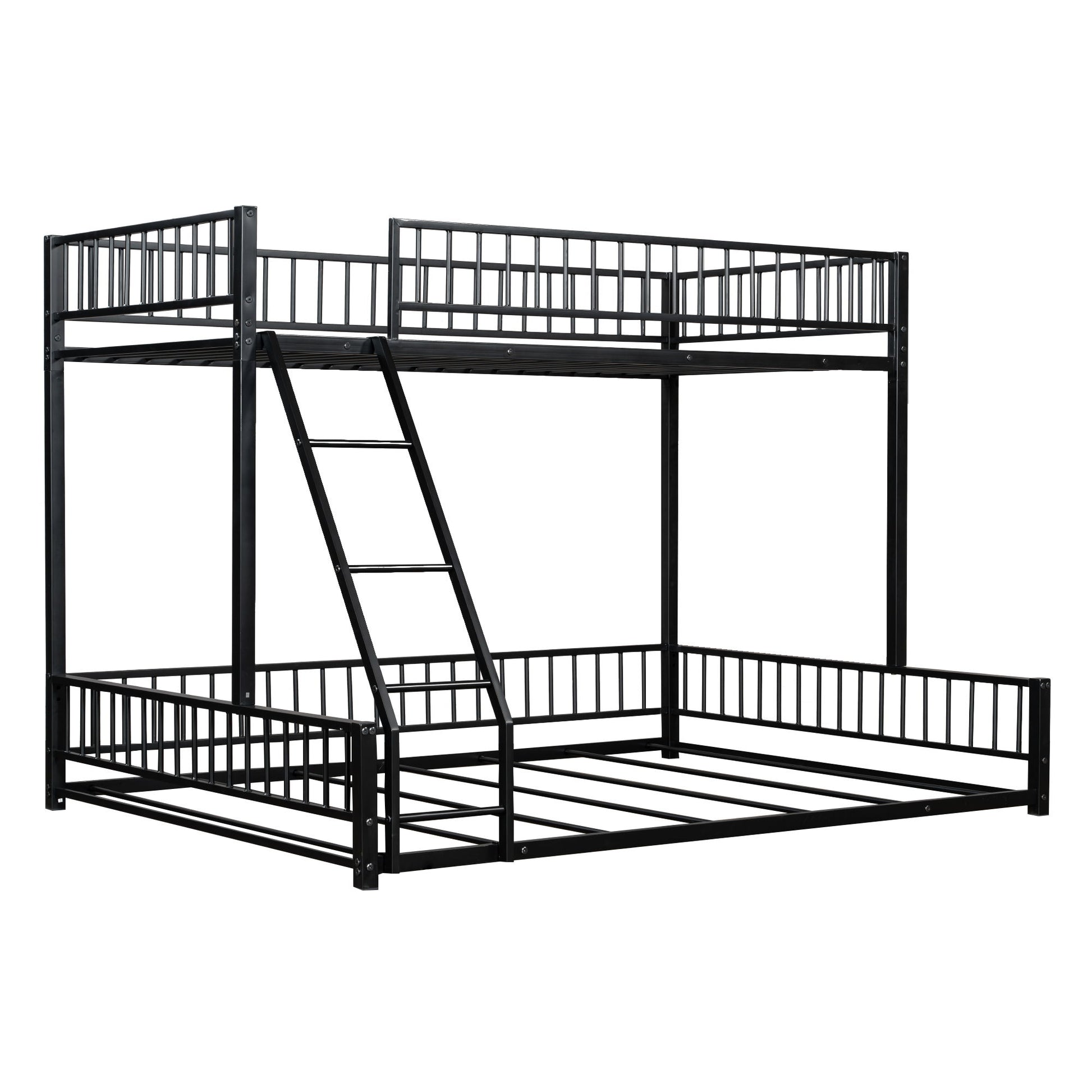 Twin Long Over Queen Bunk Bed Frame With Ladder And Safety Guardrails - Black