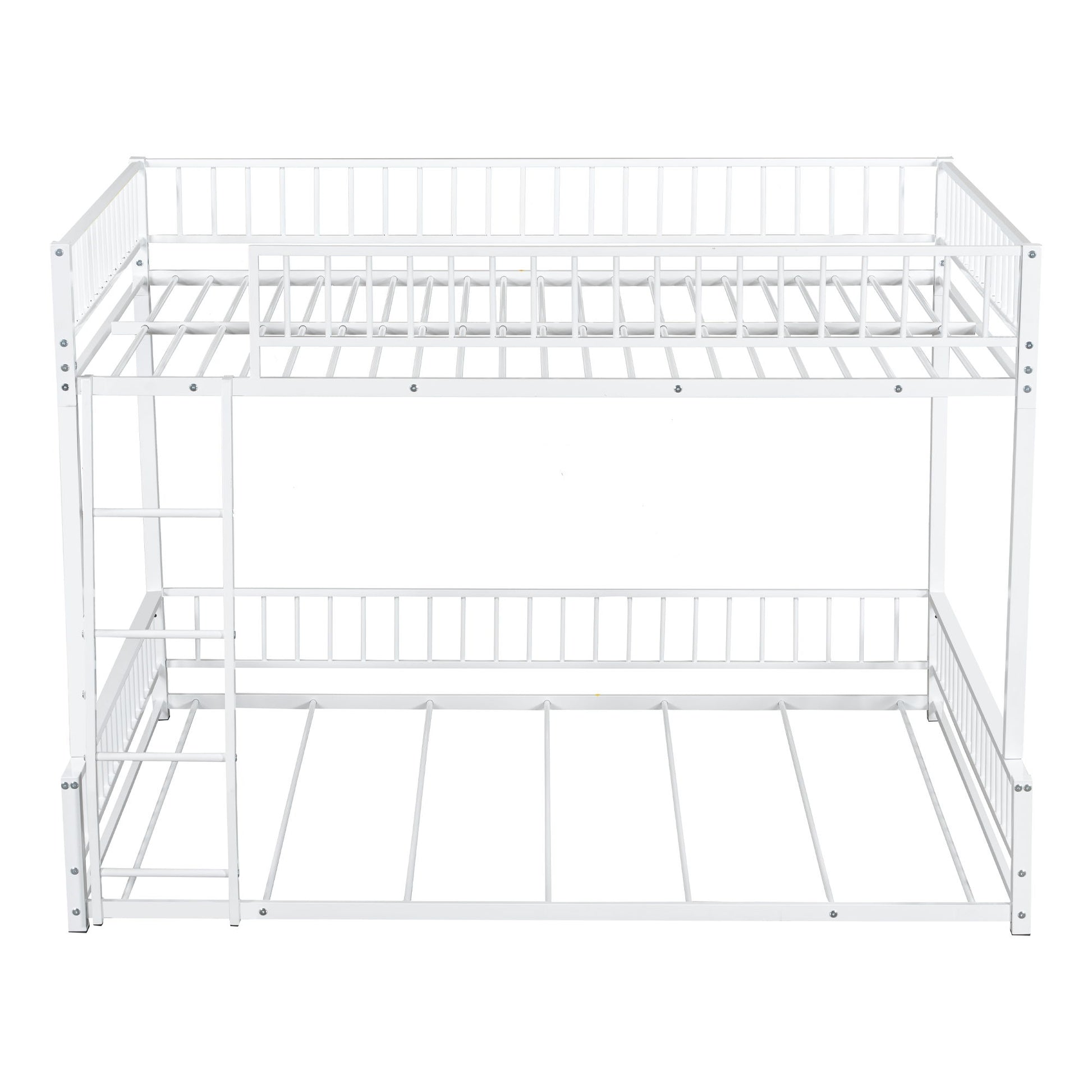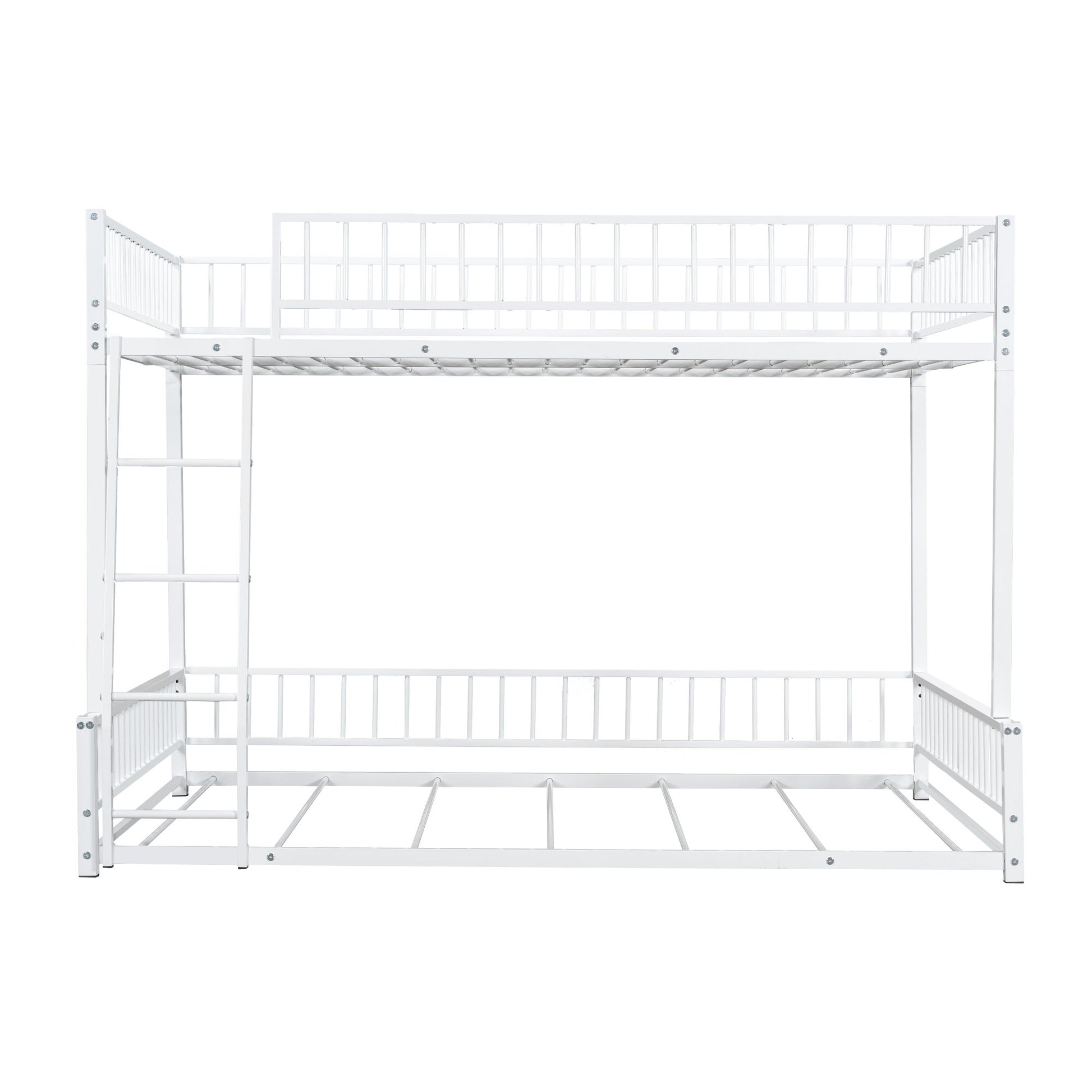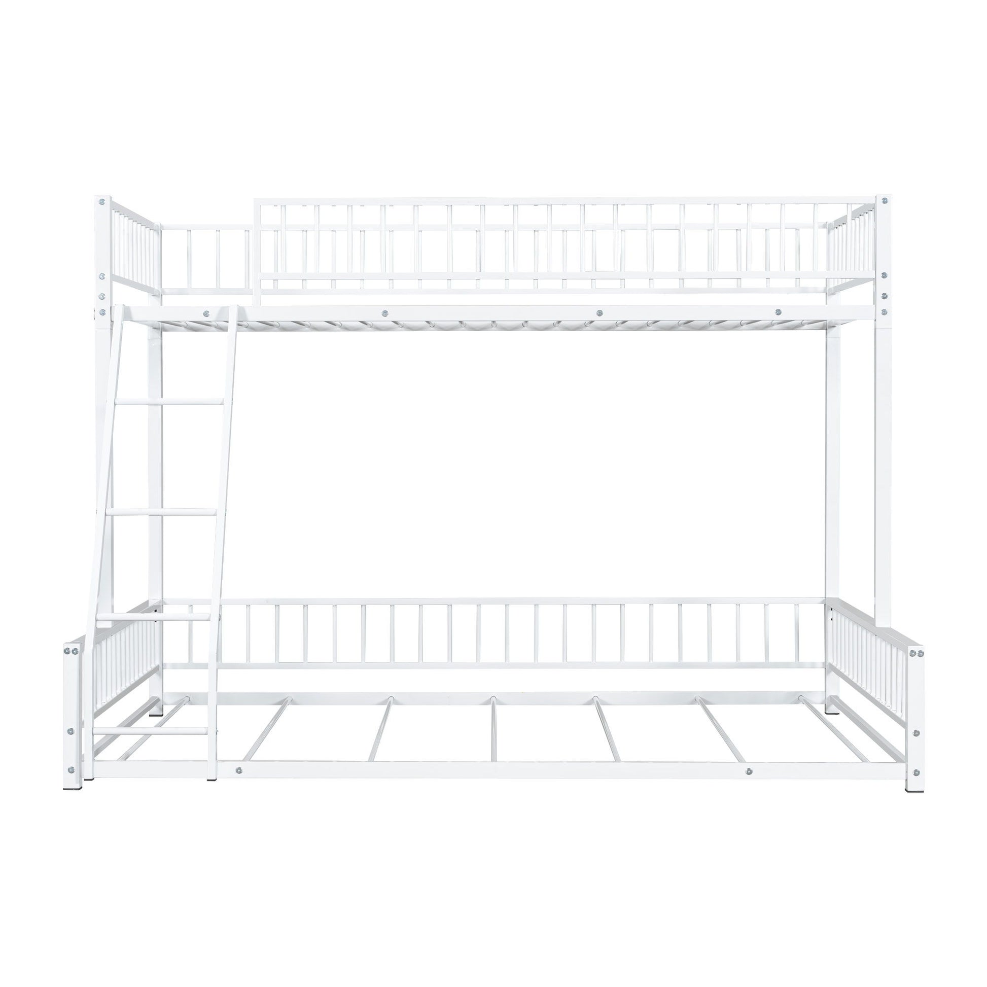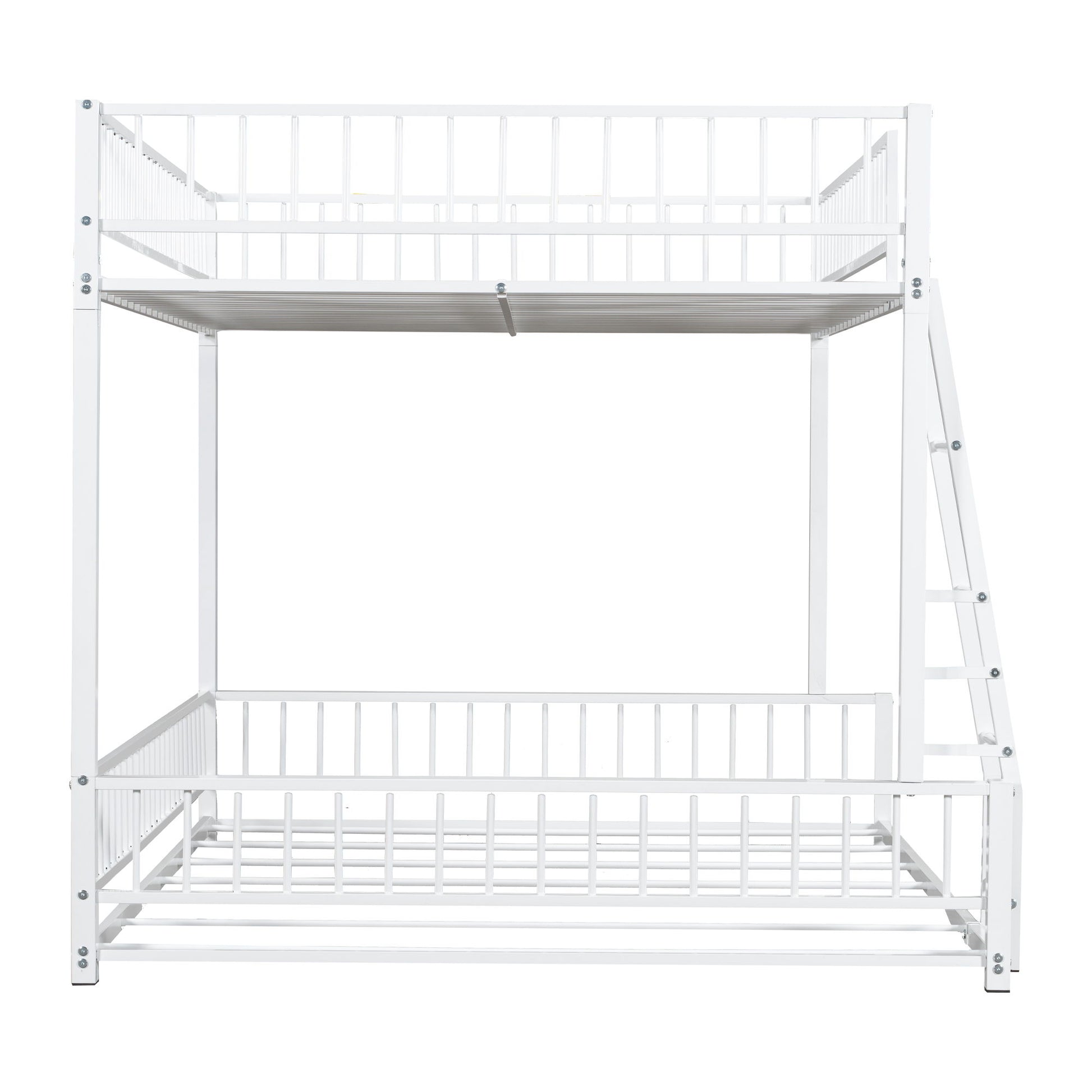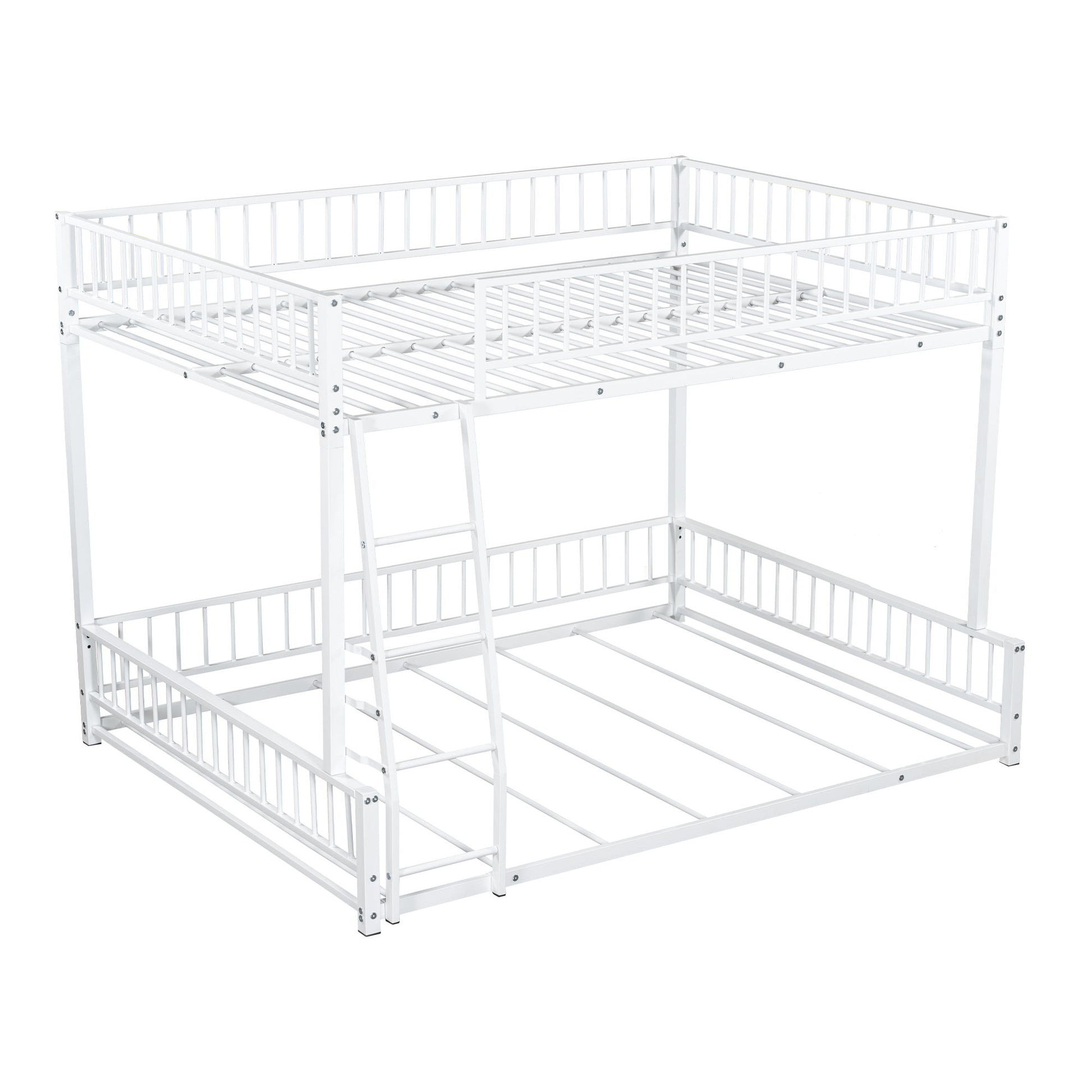Full Long Over Queen Bunk Bed Frame With Ladder And Safety Guardrails - White
