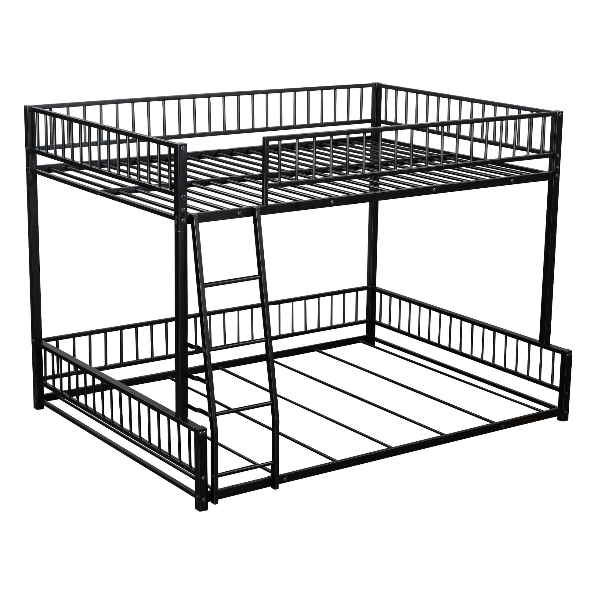 Full Long Over Queen Bunk Bed Frame With Ladder And Safety Guardrails - Black