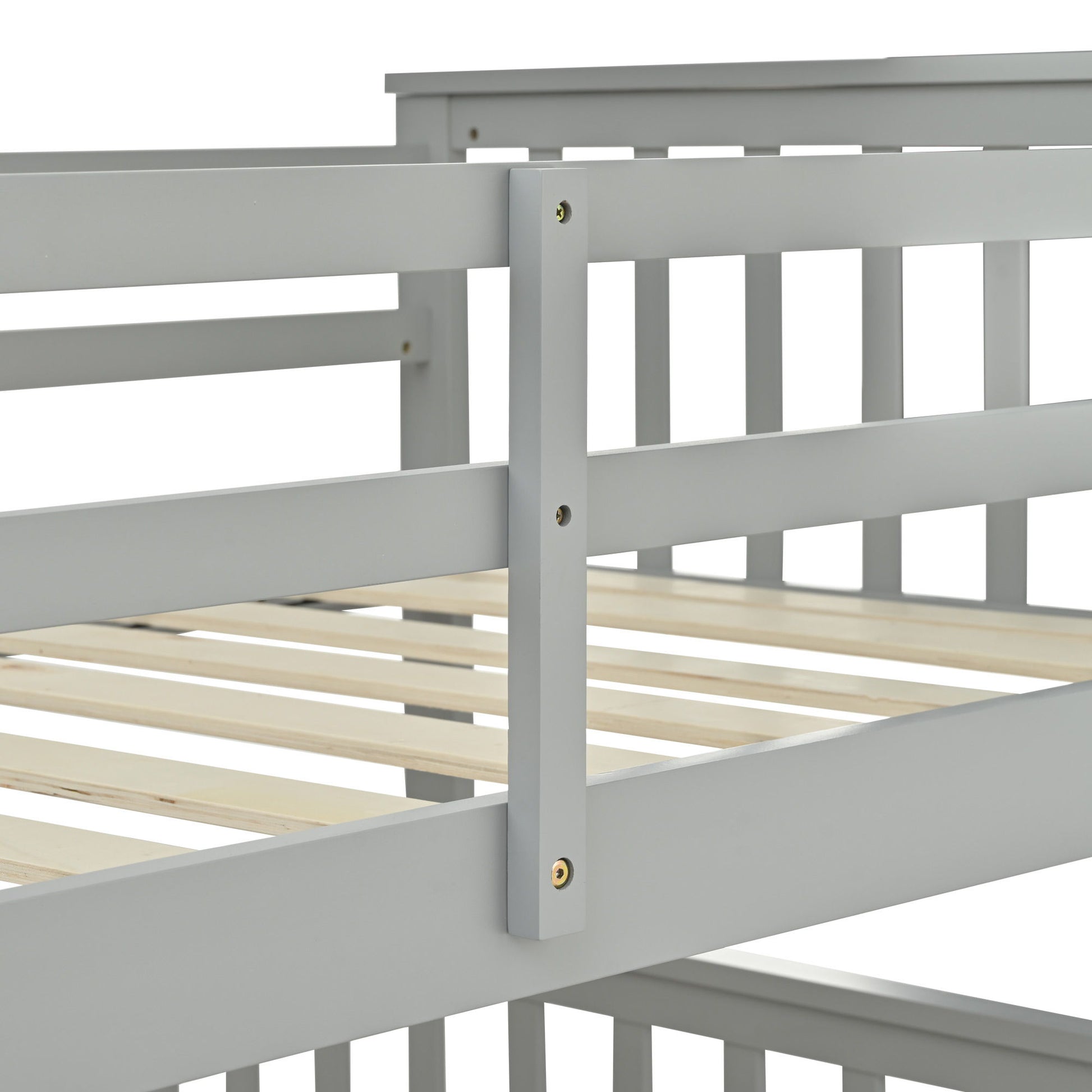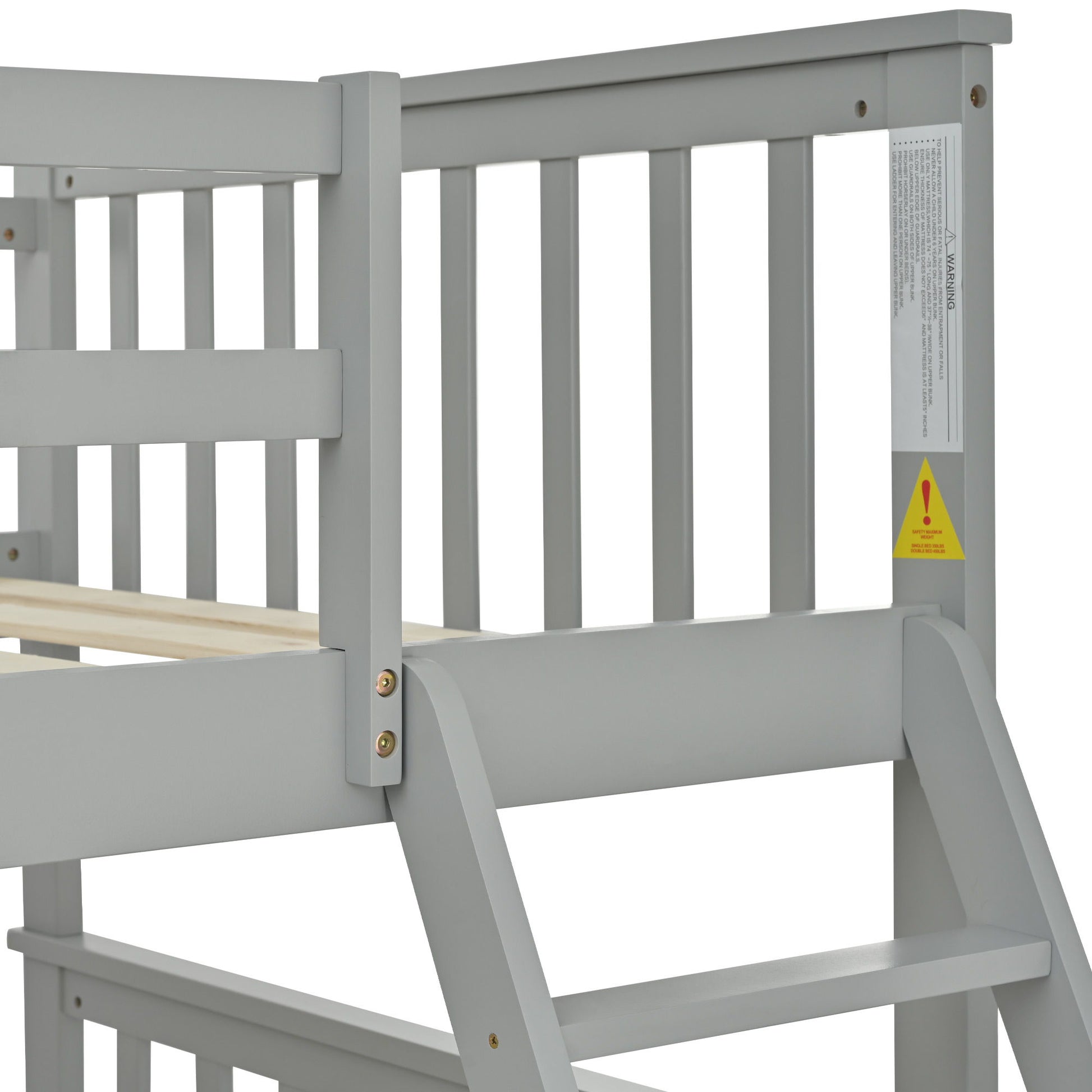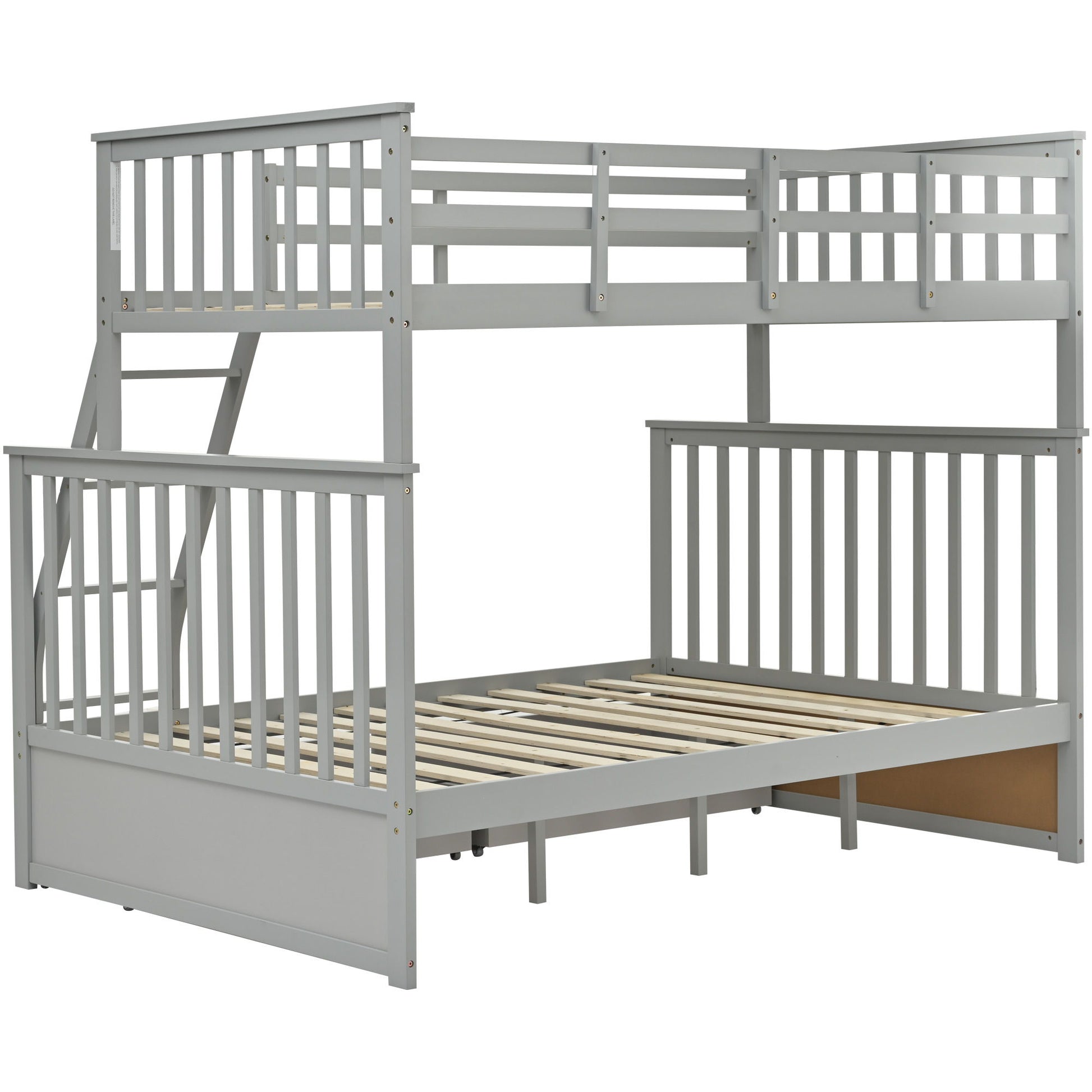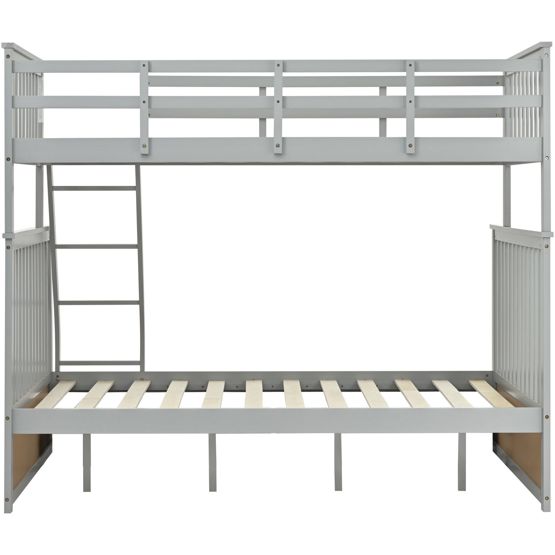 Twin Over Full Bunk Bed With Ladder And Safety Guard Rails - Gray