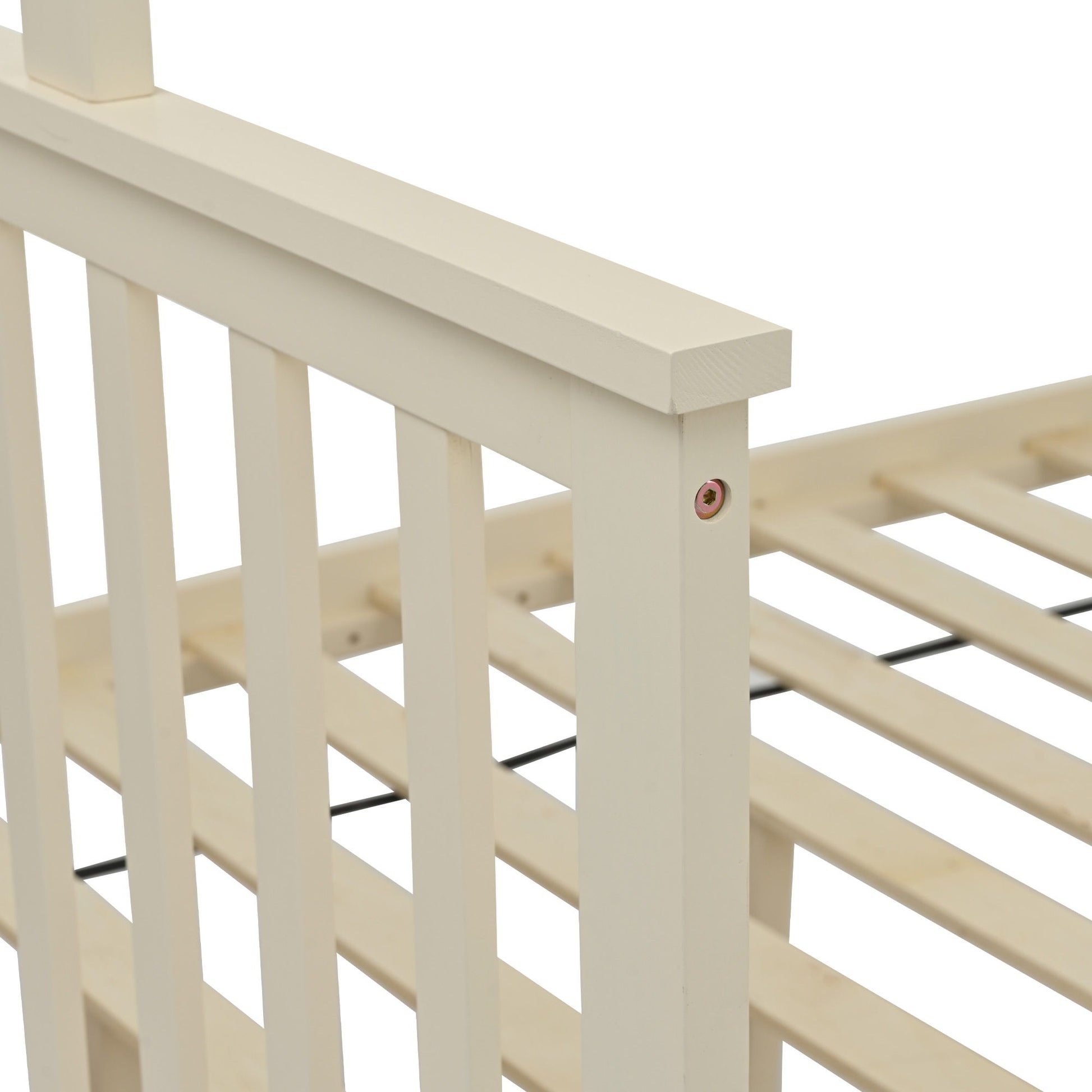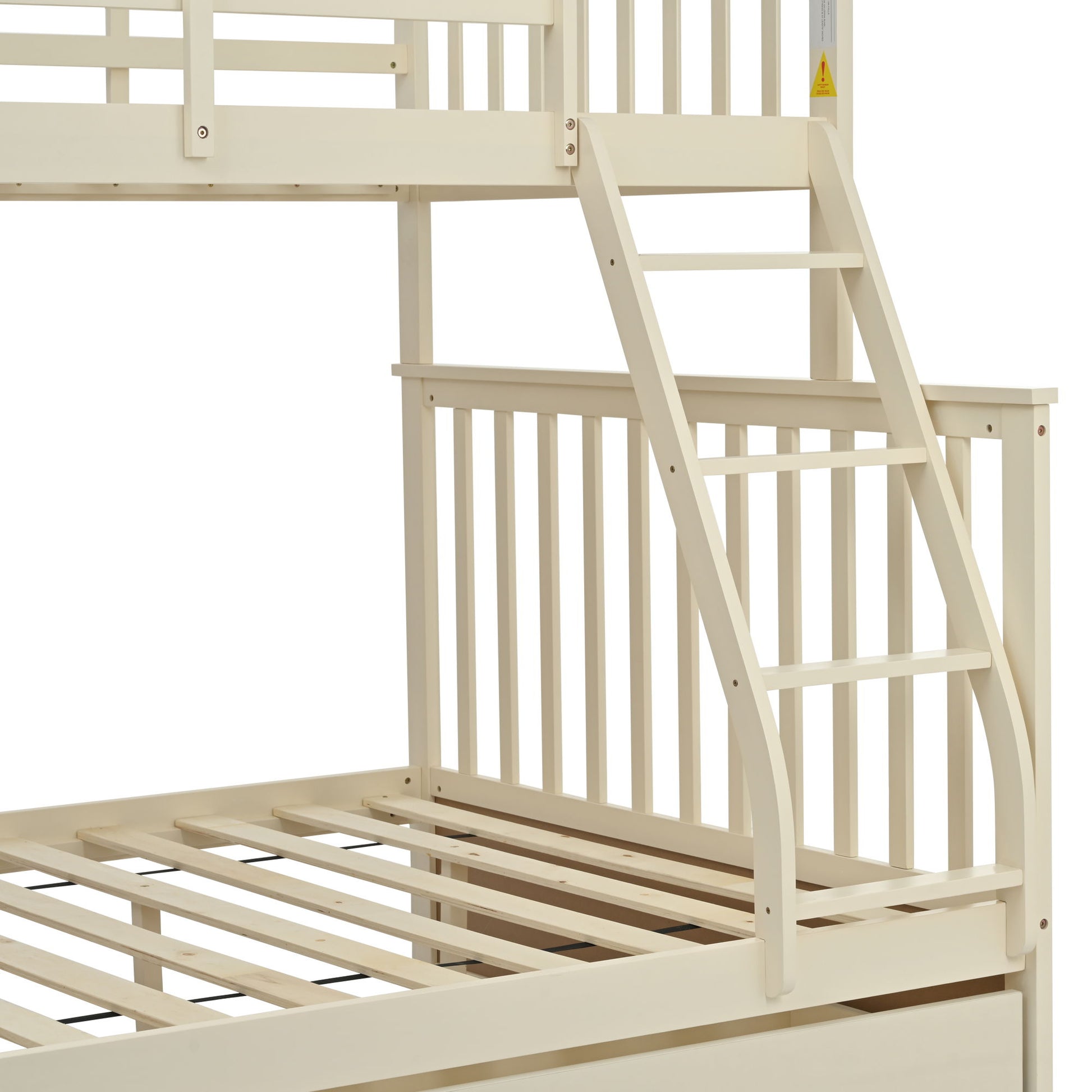 Wooden Twin Over Full Bunk Bed With Storage Drawers Safety Guard Rails And Ladder - Cream