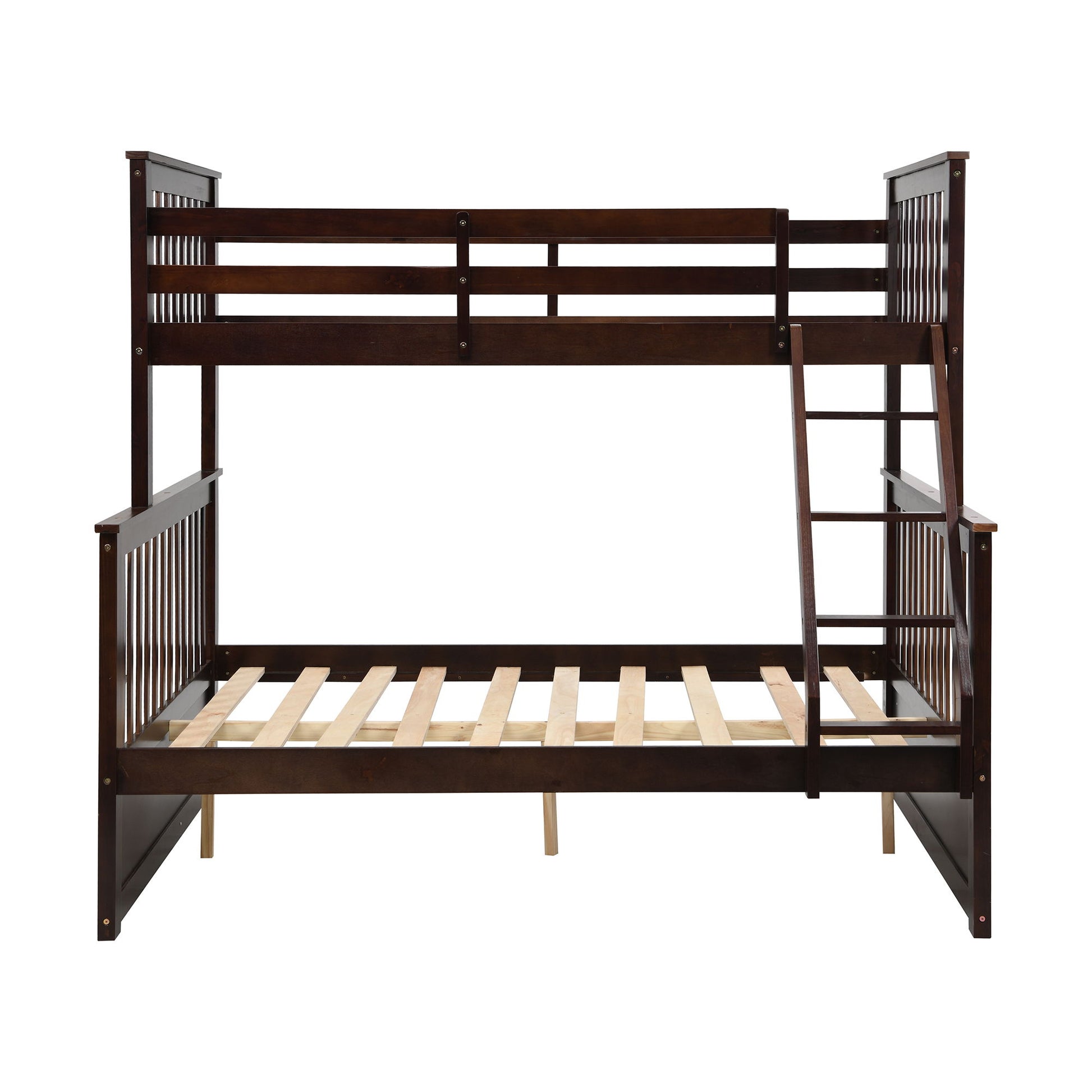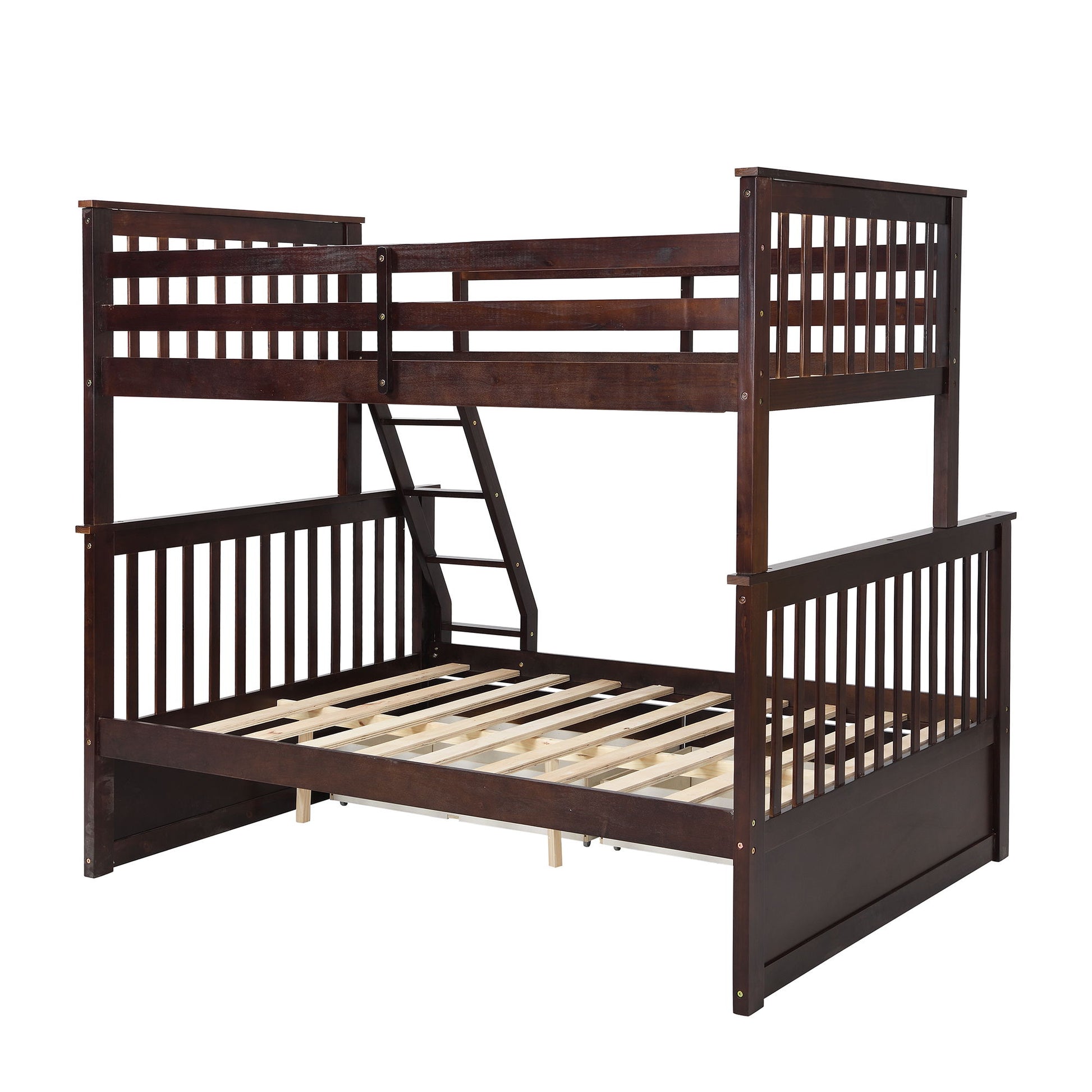 Wooden Twin Over Full Bunk Bed With Storage Drawers Ladder And Safety Guard Rails - Dark Brown
