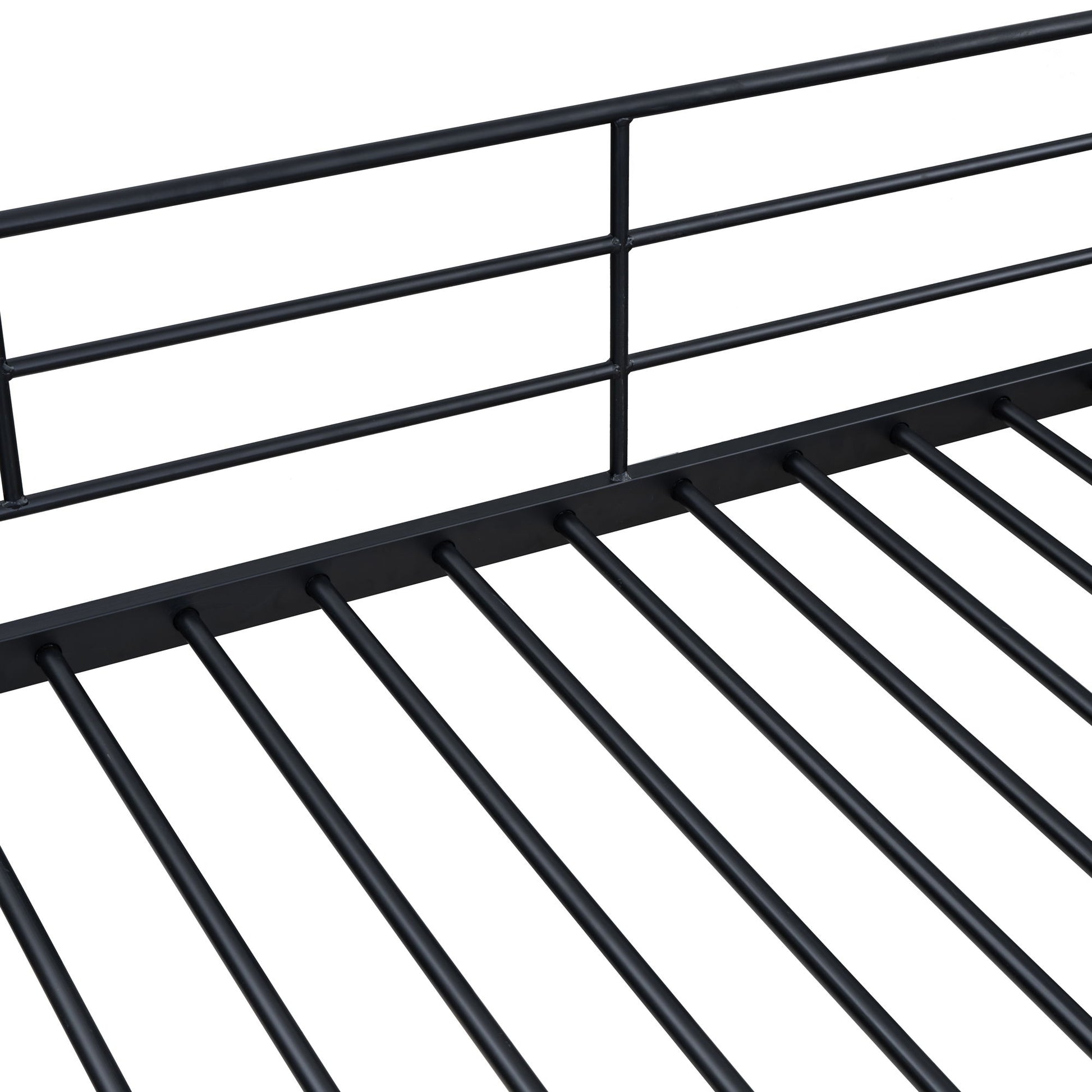 Twin Over Twin Metal Bunk Bed With Lateral Storage Ladder And Wardrobe - Black