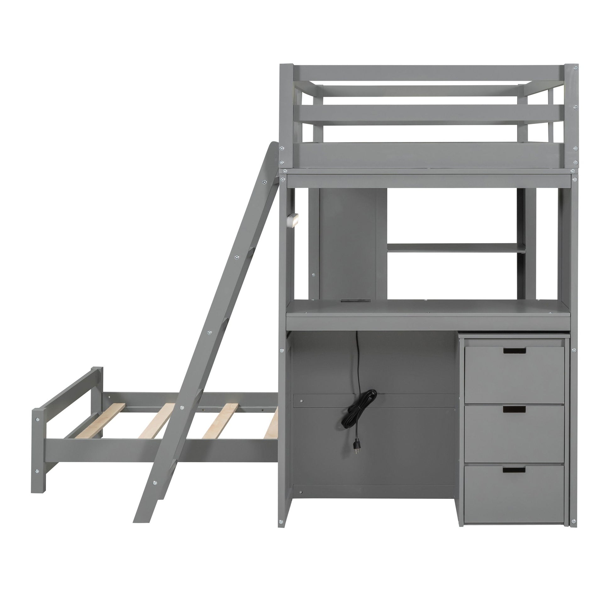 \Twin Over Twin Bunk Bed With LED Light And USB Ports - Gray