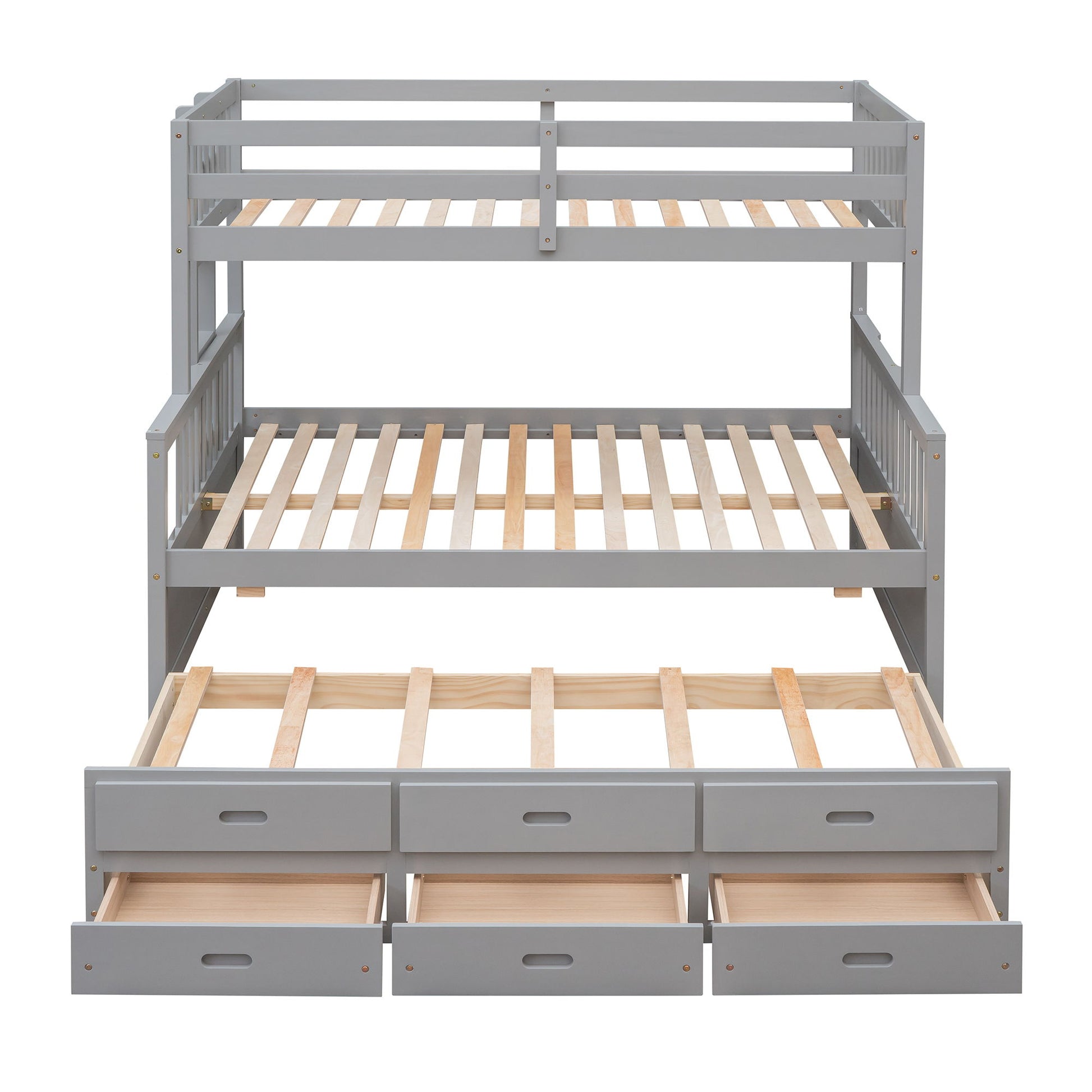 Twin Over Full Bunk Bed With Twin Size Trundle, With Drawers For Bedroom - Gray
