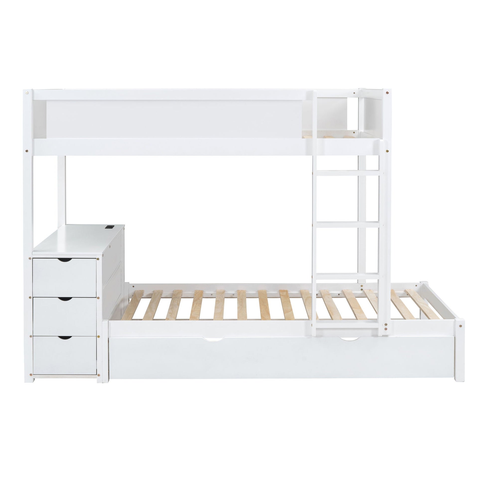 Twin Over Twin Bunk Bed With Twin Size Trundle, Storage And Desk - White