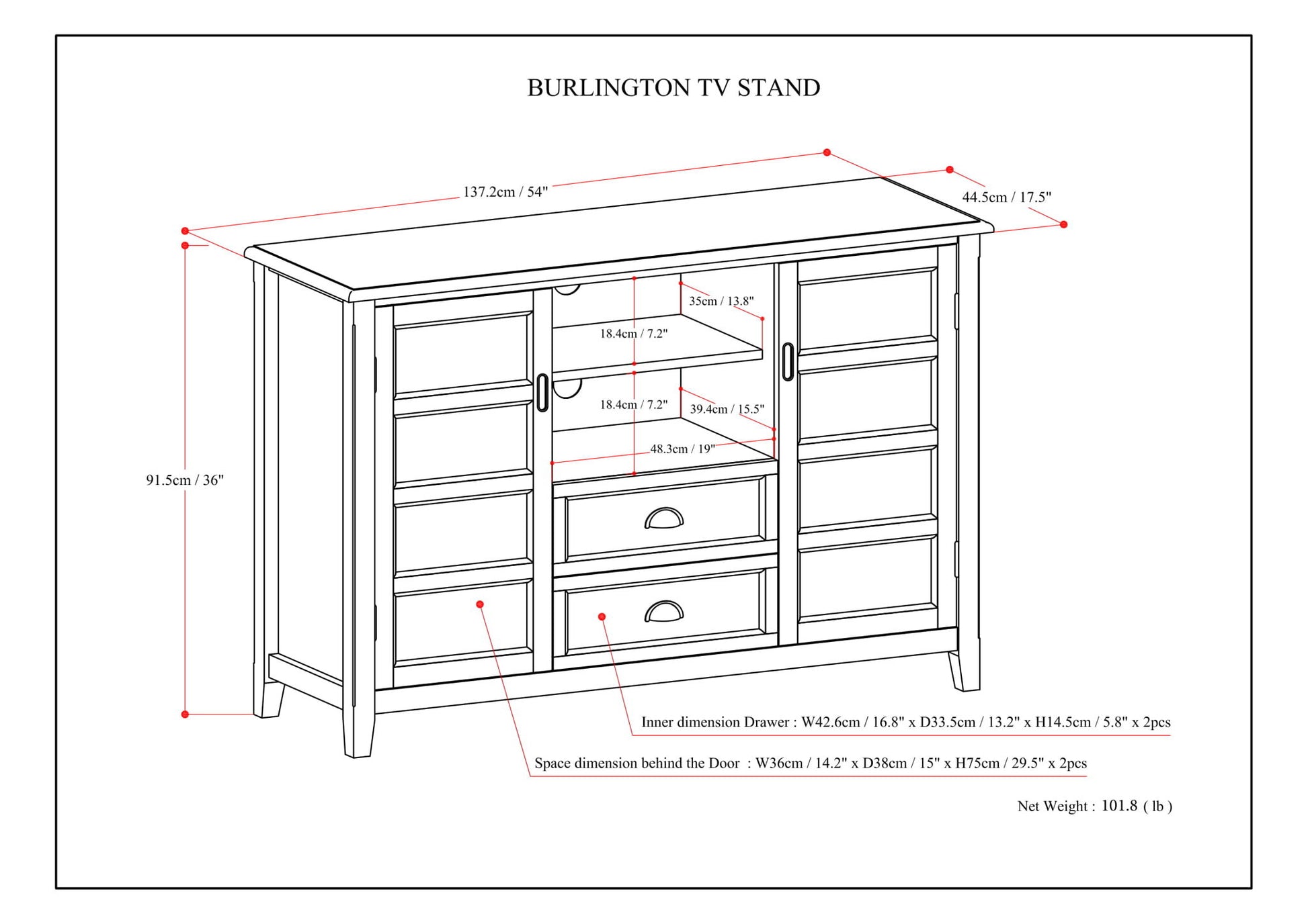 54.0"W x 17.5"D x 36.0"H - 101.4 lb